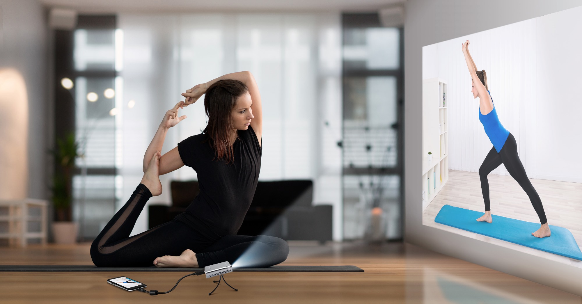 La batteria ricaricabile da 6000 mAh integrata permette di utilizzare il videoproiettore  anche in mancanza di una presa elettrica - con un’autonomia fino a cinque ore -  e come power bank per ricaricare i dispositivi portatili.