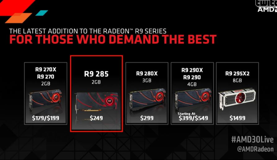 I rumors ne hanno parlato abbastanza negli ultimi giorni e sembra ormai certa la presentazione delle GPU Tonga di AMD a un evento che si terrà il prossimo 2 settembre. Sul sito Videocardz sono disponibili alcune slide che riportano le specifiche tecniche della Radeon R9 285, oltre alle prime immagini della versione Strix del partner ASUS, della versione by HIS, SAPPHIRE e XFX.