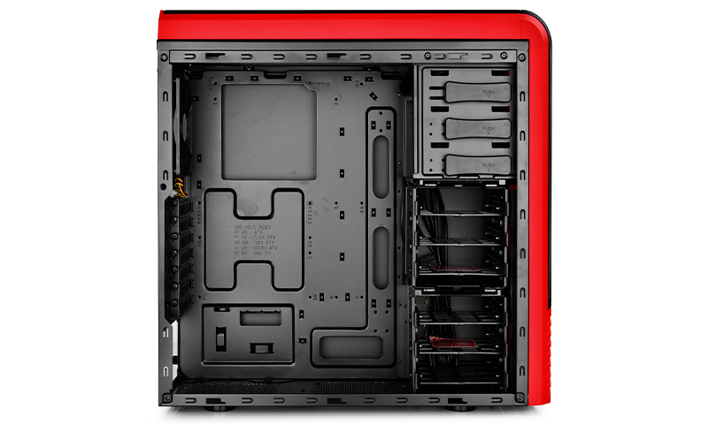 Il DeepCool Pangu SW-RD misura 498x205x477mm supporta schede madri dal formato ATX, micro-ATX e mini-ITX. Trovano spazio schede video lunghe fino a 310 mm, o fino a 400 mm rimuovendo il cage degli HDD, e dissipatori CPU alti fino a 165 mm. Dietro la griglia mesh frontale si trovano tre alloggi per periferiche da 5,25" e sei per bay da 2,5" / 3,5". Di fianco ai sette slot di espansione PCI sono presenti due fori per il passaggio di tubi.