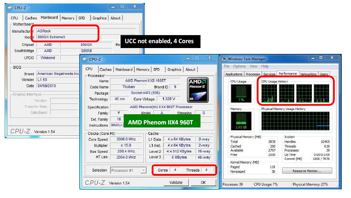 AMD PhenomII X4 960T => 6 Core attivi e Opzione UCC attivata: