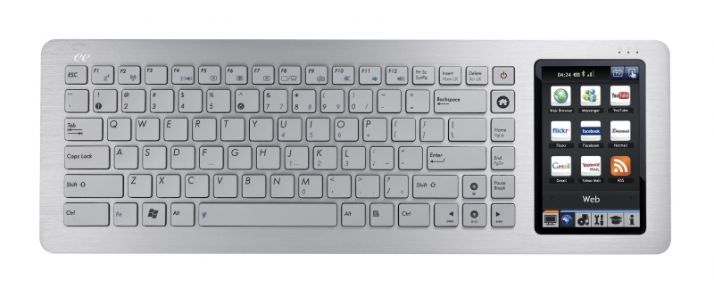 L’aspetto, estremamente curato e raffinato, è quello di un’elegante tastiera in alluminio, dal peso di appena 1 Kg ed uno spessore davvero contenuto, con una altezza massima di 2,4 cm, che trova facilmente posto ovunque e può essere comodamente portata da un ambiente all’altro a seconda delle occasioni di utilizzo. Utilizzare EeeKeyboard PC è semplice ed intuitivo anche grazie all’avanzato display multitouch da 5” integrato nello chassis che, tramite il semplice tocco delle dita, consente di accedere ai programmi ed alle applicazioni d’uso più frequente, controllare le funzionalità multimediali o fungere da ampio touchpad con cui gestire il puntatore o le funzionalità di zoom e scorrimento della visualizzazione quando è collegata ad un display esterno.