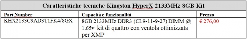 HyperX T1 di Kingston (PN: KHX2133C9AD3T1FK4/8GX) è il primo kit di memoria da 8GB al mondo a ottenere questa certificazione. Per visualizzare i dettagli della certificazione XMP di Intel: http://www.intel.com/consumer/game/extreme-memory.htm