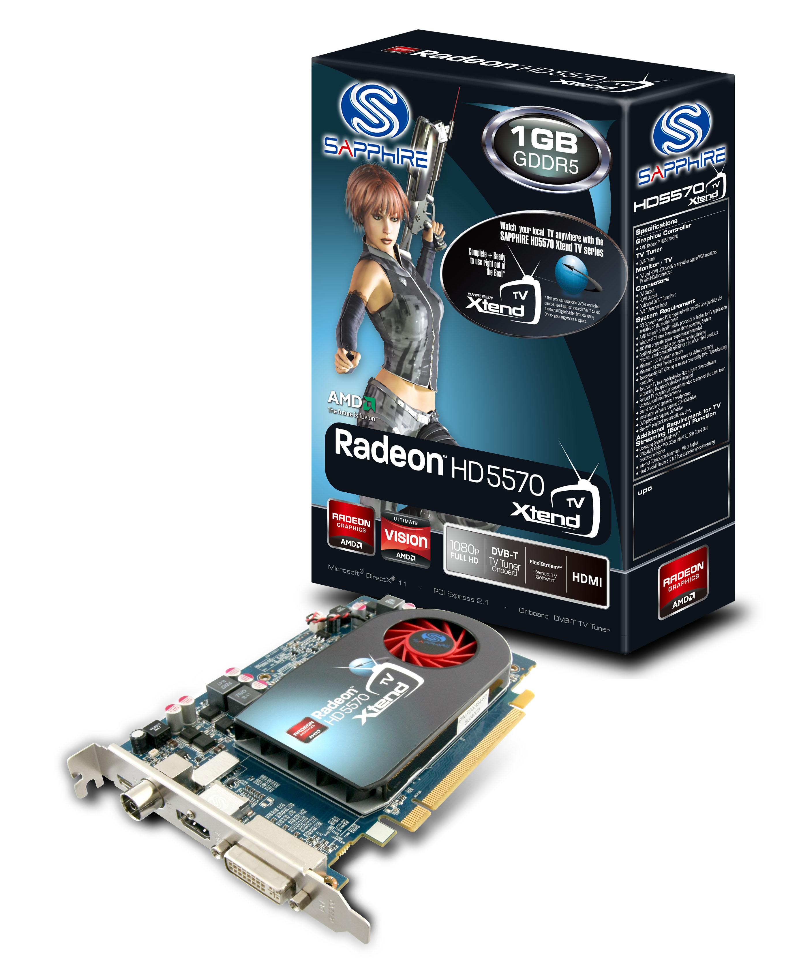 Sapphire presenta HD 5570 XtendTV, scheda video con sintonizzatore TV che fa affiorare i ricordi delle vecchie serie All-In-Wonder.Sapphire Technology ha presentato nella giornata di oggi una nuova scheda sintonizzatore TV, SAPPHIRE HD 5570 XtendTV. Sapphire HD 5570 XtendTV è una scheda grafica a slot singolo PCI-Express con 1GB di memoria GDDR5, uscite HDMI e DVI e sintonizzatore TV programmabile incorporato.