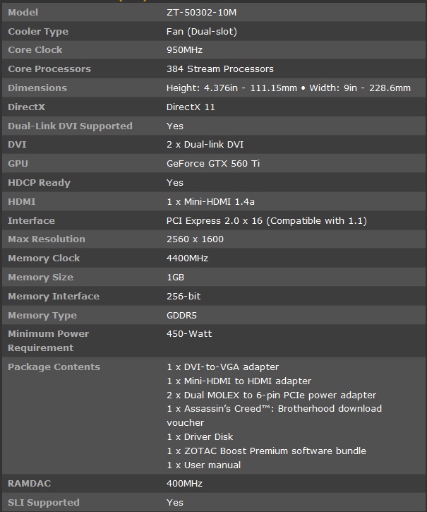 Zotac nota casa americana produttrice di schede grafiche fedele al brand Nvidia, propone sul mercato a poco più di pochi mesi dalle sue prime soluzioni gtx 560 la nuova GTX 560 AMP, che come sappiamo bene è una versione overcloccata di fabbrica. La nuova versione viene venduta con in bundle il gioco Assasin's Creed Brotherhood.La Vga in questione ha caratteristiche molto interessanti ed anche un prezzo molto allettante 260 € , disponibile fin da subito.