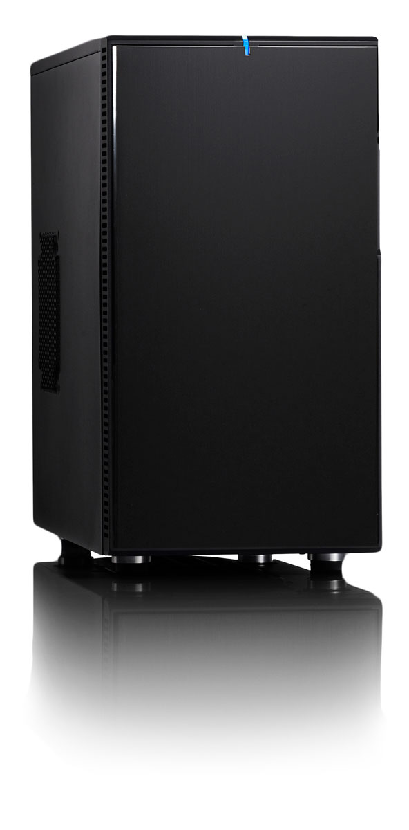 Il Core 3000, invece, è un mid-tower caratterizzato da uno stile elegante e sobrio. Internamente ha una conformazione che migliora la circolazione d’aria. Imbottito di materiale fonoassorbente, anche gli alloggiamenti per HDD hanno guide in silicone per ridurre al minimo le vibrazioni. La gabbia per HDD posta nella parte superiore è rimuovibile e ruotabile per consentire l’installazione di VGA particolarmente lunghe. Le tre ventole pre-installate (140mm sul pannello frontale, 120mm su quello posteriore e 140mm nella parte superiore) sono pilotate da un fan controller per bilanciare efficienza e silenziosità. Sul Core 3000 possono essere montate altre 4 ventole (4x120mm o 2x120mm + 2x140mm) mentre la griglia del pannello anteriore e quella inferiore della zona PSU sono munite di filtro antipolvere.