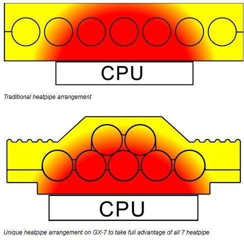Presentato allo scorso CeBIT di Hannover, GELID immette sul mercato un dissipatore per processori della serie Gamer: il GX-7.Il dissipatore è caratterizzato da accorgimenti atti a migliorare il trasferimento di calore generato dalla CPU. In particolare, il GELID GX-7 è dotato di 7 heat pipes disposte su due file e di alettature di alluminio con forma a V per ottimizzare il flusso d'aria. Inoltre, il dissipatore consente l'installazione di una seconda ventola.