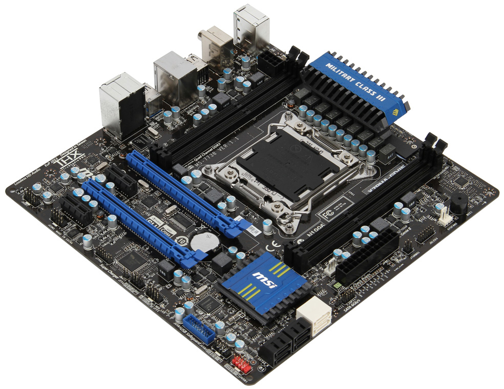 Anche MSI presenta una scheda Micro-ATX per le nuove CPU Sandy Bridge-E. La scheda è dotata di un sistema di alimentazione Military Class III a 9+2 fasi, per garantire la massima stabilità anche in overclock. 4 gli slot DDR3, due per ciascun lato del socket, 2 gli slot PCI Express 3.0 x16 in grado di supportare SLI e Crossfire.Troviamo inoltre altri 2 slot di espansione PCI-Express 2.0 x1, 2 Sata 6Gb/s, 4 Sata 3Gb/s, 4 USB 3.0 (di cui due interne per eventuali porte frontali del case) gestite da un controller Renesas.