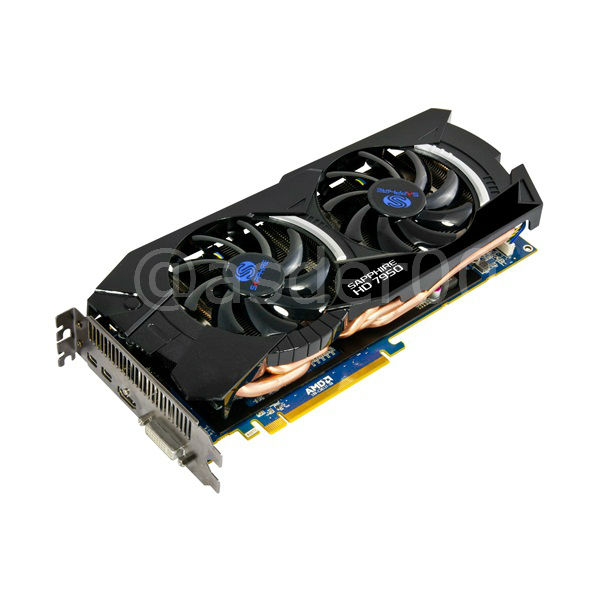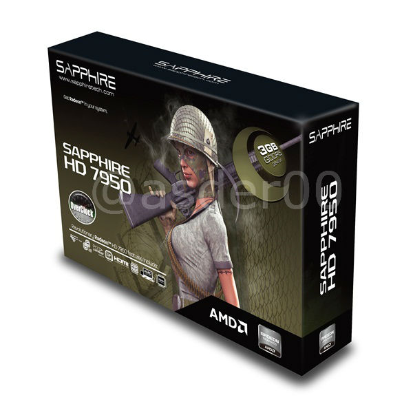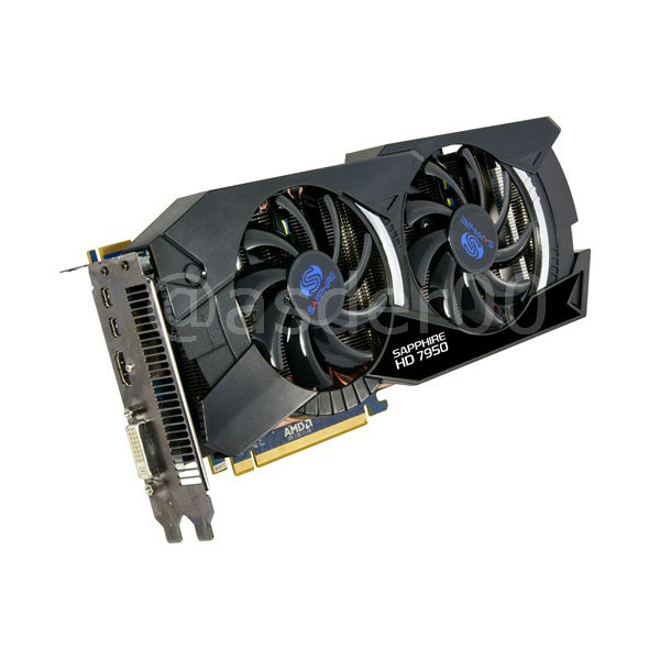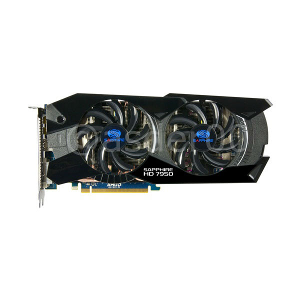 La Sapphire Radeon HD 7950 misura 275 (L) x115 (W) x 42 (H) mm ed è dotata di un dissipatore dual slot con due ventole che vanno a coprire l'intero PCB della scheda. Il modello mostrato opera a frequenze superiori a quelle definite da AMD: la GPU da 28 nm lavora a 900 MHz, è dotata di 1792 Stream Processors e la memoria da 3072 MB opera a 5000 MHz con interfaccia GDDR5 da 384-bit.