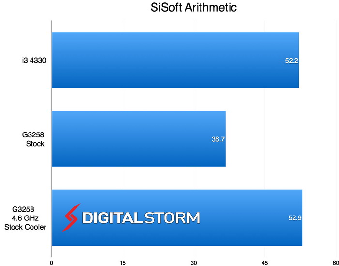 Su una piattaforma composta da una ASUS Z97 Deluxe e 16 GB di RAM Corsair Dominator Platinum DDR3-1877, il Pentium G3258 è stato spinto fino a 4,6 GHz con tensione di 1,28 V utilizzando il dissipatore stock. Con sistema di raffreddamento a liquido non sono riusciti a spingire di più il processore, trovando quindi già il limite dell'esemplare con il dissipatore ad aria reference. Di seguito tutti i risultati ottenuti.