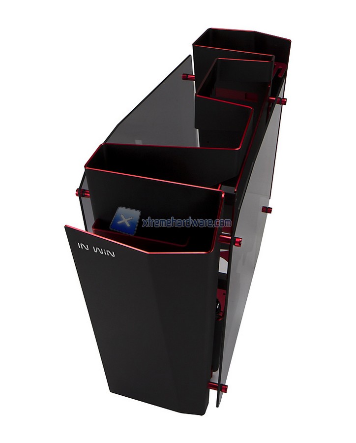 In Win non finisce qui e presenta al Computex di Taipei anche una versione rinnovata dell'In Win GRone. Allo stand era presente la versione in colorazione nera di questo fantastico case di fascia medio-alta che permette di ospitare senza problemi configurazioni high-end. L'In Win GRone e` un case realizzato in SECC con dimensioni di Full Tower e pannello finiestrato per permettere di visualizzare l'hardware all'interno del case. Per quanto riguarda la dissipazione di questo case, esso permette l'installazione nel top di radiatori da 360 millimetri, nel fondo (previa rimozione dei cage per gli HD) di un radiatore da 240 millimetri e di fori per il passaggio dei tubi nella parte posteriore. Inoltre non manca un supporto a schede grafiche di fascia alta con lunghezza fino a 365 millimetri, porte USB 3.0, ed il pieno supporto a schede madri anche in formato E-ATX.