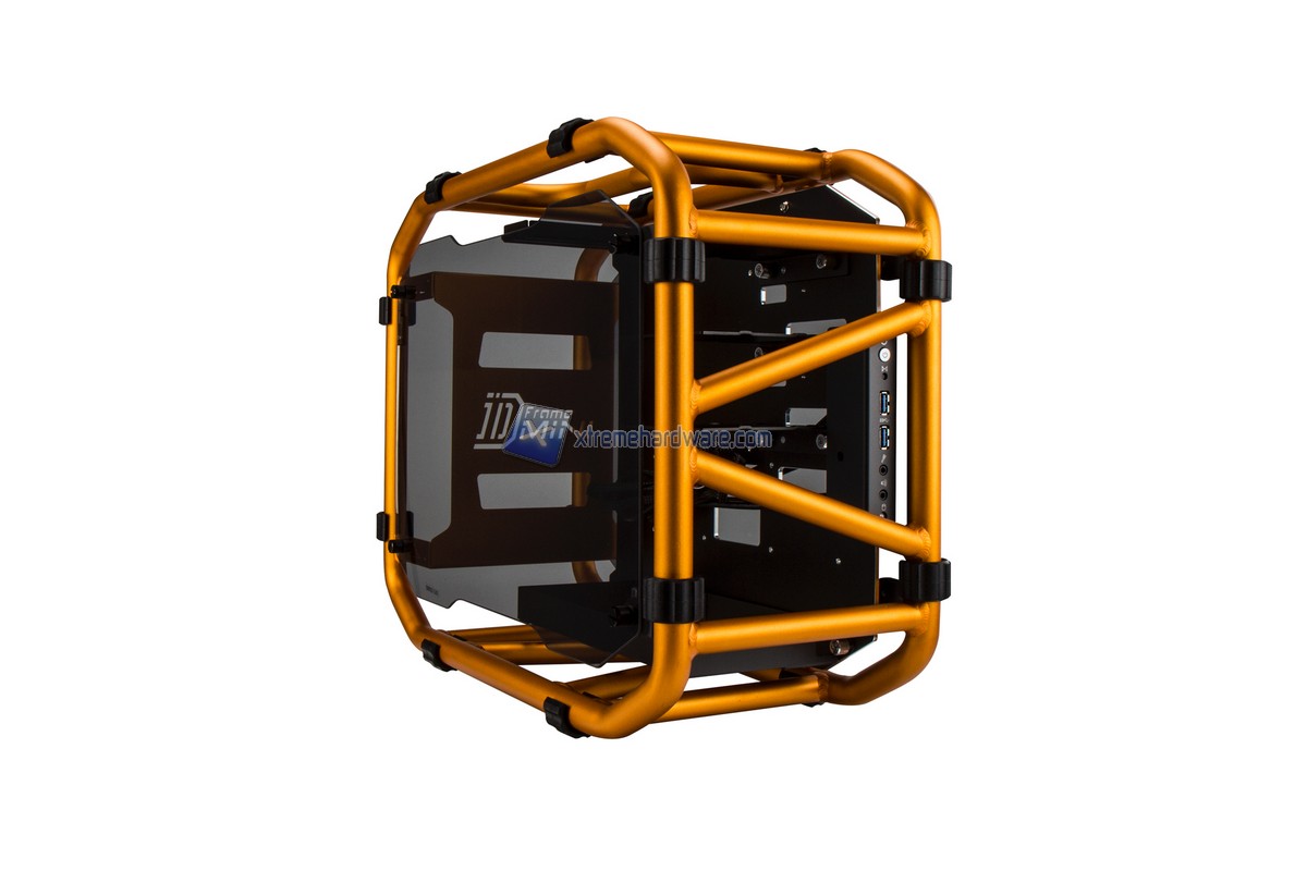 Partiamo subito dal nuovissimo D-Frame Mini modello ITX del fratello maggiore D-Frame. Il nuovo D-Frame riprende la linea ed il design del D-Frame con la semplice differenza nel formato. Il D-Frame Mini ospita soltanto schede madri in formato Mini-ITX ma e` comunque dotato di caratteristiche che lo rendono un case di fascia alta come ad esempio la possibilita` di installare alimentatori fino a 220 millimetri (quindi anche modelli di fascia alta), schede video high-end o ancora dissipatori AIO o radiatori da 240 millimetri. Il design del D-Frame Mini e` unico come quello del D-Frame. La struttura e` interamente in tubolari di alluminio e di tipo Open Frame con pannelli laterali in acrilico fume` per rendere il case o diciamo questa opera d'arte unica. I colori che abbiamo visto sono stati Nero,Rosso, Oro e Bianco. Il D-Frame Mini e` dotato anche di due porte USB 3.0 e unita` da 3,5" trasformabili in unita` da 2,5".