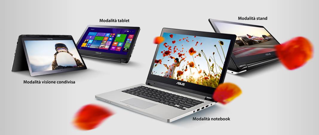 Si chiama ASUS Transformer Book Flip il nuovo notebook convertibile con sistema operativo Windows 8.1 elegante, innovativo e conveniente che vanta un design e una versatilità straordinari, caratterizzato dalla possibilità di ruotare, inclinare o ribaltare lo schermo fino a 360°. Transformer Book Flip si adatta perfettamente alle esigenze di ogni singolo utente offrendoquattro diverse possibilità di utilizzo con un semplice gesto: in un istante si trasforma infatti da potente notebook in un pratico tablet, in modalità stand ove è possibile utilizzare lo schermo touch senza l’utilizzo di accessori esterni o ancora in modalità condivisa che permette di condividere giochi, video, foto o presentazioni in modo efficace e coinvolgente.