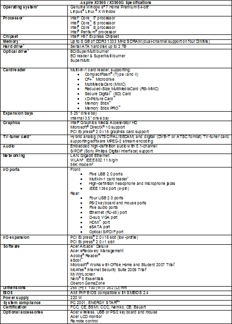 Acer Aspire X3900 è la scelta perfetta per gli utenti multimediali domestici e gli appassionati dell'intrattenimento che cercano un sistema ricco di funzionalità in grado di soddisfare le loro esigenze di computing e intrattenimento.