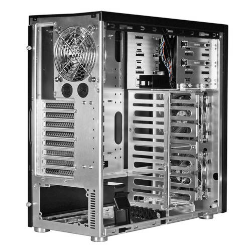 Questo nuovo case può ospitare 6 dischi da 3.25'', 3 da 5.25'' e 8 slot pci dotati di un pad di gomma per ridurre il rumore ele vibrazioni. Il vano dell'alimentatore che si trova nella parte inferiore del chassis permette di bilanciare i pesi al suo interno.