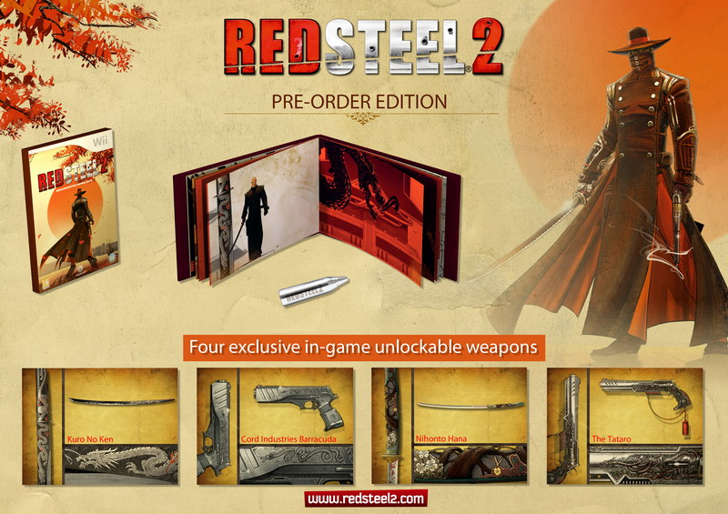 - Un art book di Red Steel 2 di 20 pagine più doppia copertina che immergerà i giocatori nell’universo del gioco grazie a una serie di disegni e schizzi preparatori realizzati dal team di sviluppo.