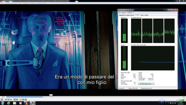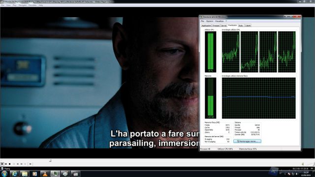 Lanciando due filmati ad alta definizione saturiamo la CPU che ogni tanto rallenta facendo scattare la riproduzione.