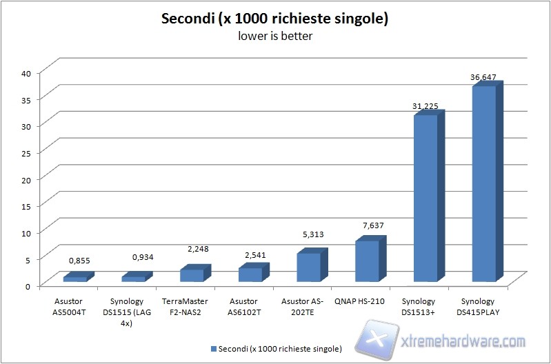 Le performance dell'Asustor AS6102T in questo senso sono molto buone. Il sistema impiega infatti appena 2,541 secondi per gestire 1000 richieste di accesso alla pagina di prova hostata sul sistema.