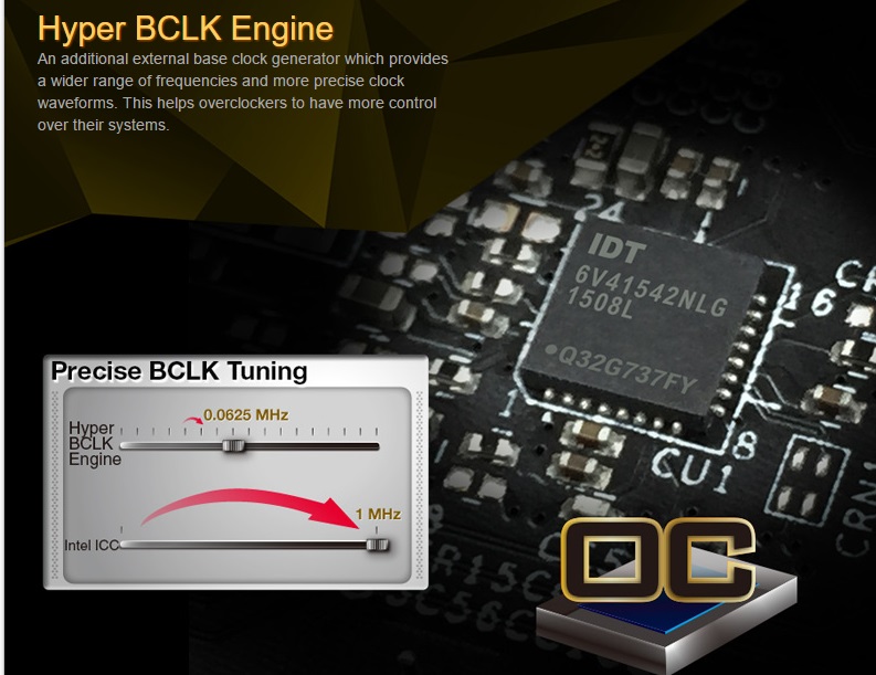 Essendo una scheda madre votata all'overclock o comunque alle prestazioni elevate la Z170 OC Formula è dotata di un controller aggiuntivo che aiuterà a variare il valore BCLK a valori intermedi permettendo così di affinare le frequenze e l'overclock complessivo.