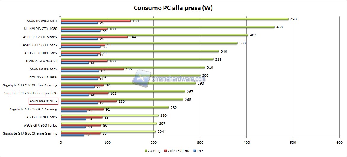 Abbiamo comparato i consumi di questa scheda video con altre VGA che abbiamo recensito ultimamente in modo da indirizzarvi meglio nell’acquisto, vi lasciamo il grafico per una migliore illustrazione: