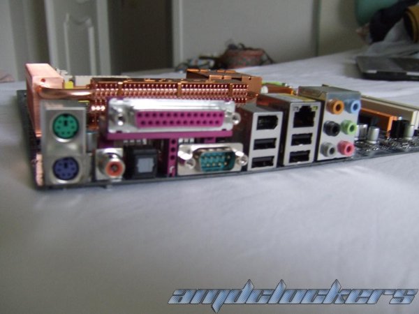 Il retro della scheda madre presenta 2 porte ps/2, una porta LPT, un connettore Spdif coassiale e ottico, una porta com, 4 porte USB, un connettore firewire, una porta ethernet e la scheda audio di Realtek.
