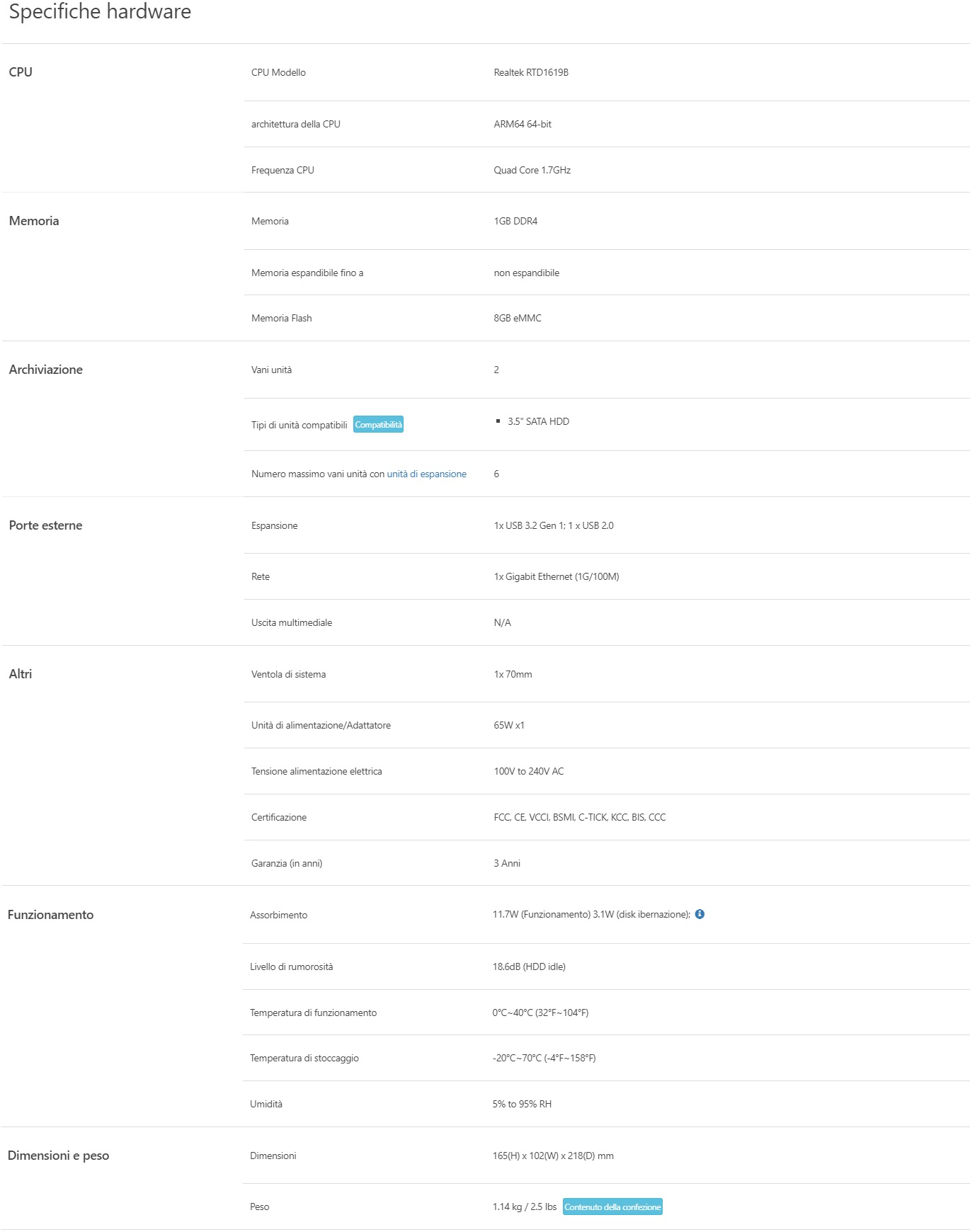 Qui invece il link diretto per verificare la compatibilità del NAS con svariati HDD (gli SSD purtroppo non sono supportati da questo modello), memorie RAM (purtroppo non espandibile) Telecamere IP, TV Stick e molto altro ancora: https://www.Asustor.com/service/compatibilityhttps://www.Asustor.com/service/compatibility.