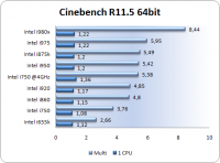 Cinebench 11.5 permette di valutare le capacità di rendering di un processore, utilizza lo stesso engine del programma Cinema 4D. Il benchmark misura le prestazioni del processore sia in modalità single threaded, sia sfruttando tutti i core a disposizione del sistema.