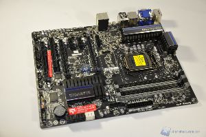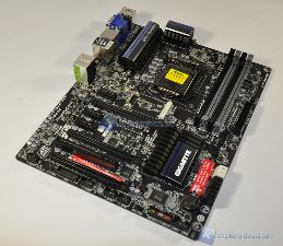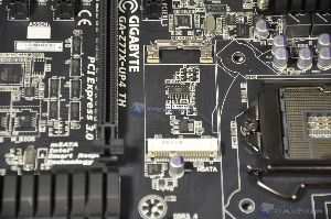 Il PCB della scheda si presenta di colore scuro, come anche i vari slot di espansione e le flange di dissipazione che risaltano però per delle placche metalliche di colore argentato. Se dividiamo la Z77X-UP4 in due con un’ipotetica linea di separazione orizzontale, nella parte superiore troviamo il socket 1155 con intorno la circuiteria di alimentazione con a destra abbiamo i 4 slot dedicati ai moduli di RAM, alternati per colore (Dual Channel) e alla sua sinistra l’insieme di porte I/O. Nella parte bassa della scheda troviamo la grossa flangia che raffredda passivamente in chipset Z77 ormai relegato a funzioni secondarie di I/O perché la connettività primaria ossia il controller PCI-Express nonché il controller per la memorie IMC sono integrati nel processore al fine di ridurre le latenze. Alla sua destra abbiamo le porte di connessione per gli hardisk, mentre sulla sinistra ci sono i 7 slot di espansione. Al centro abbiamo lo slot per mSATA dedicato ad un piccolo SSD da utilizzare come memoria cache. Vediamo più da vicino cosa nasconde la Z77X-UP4 TH.