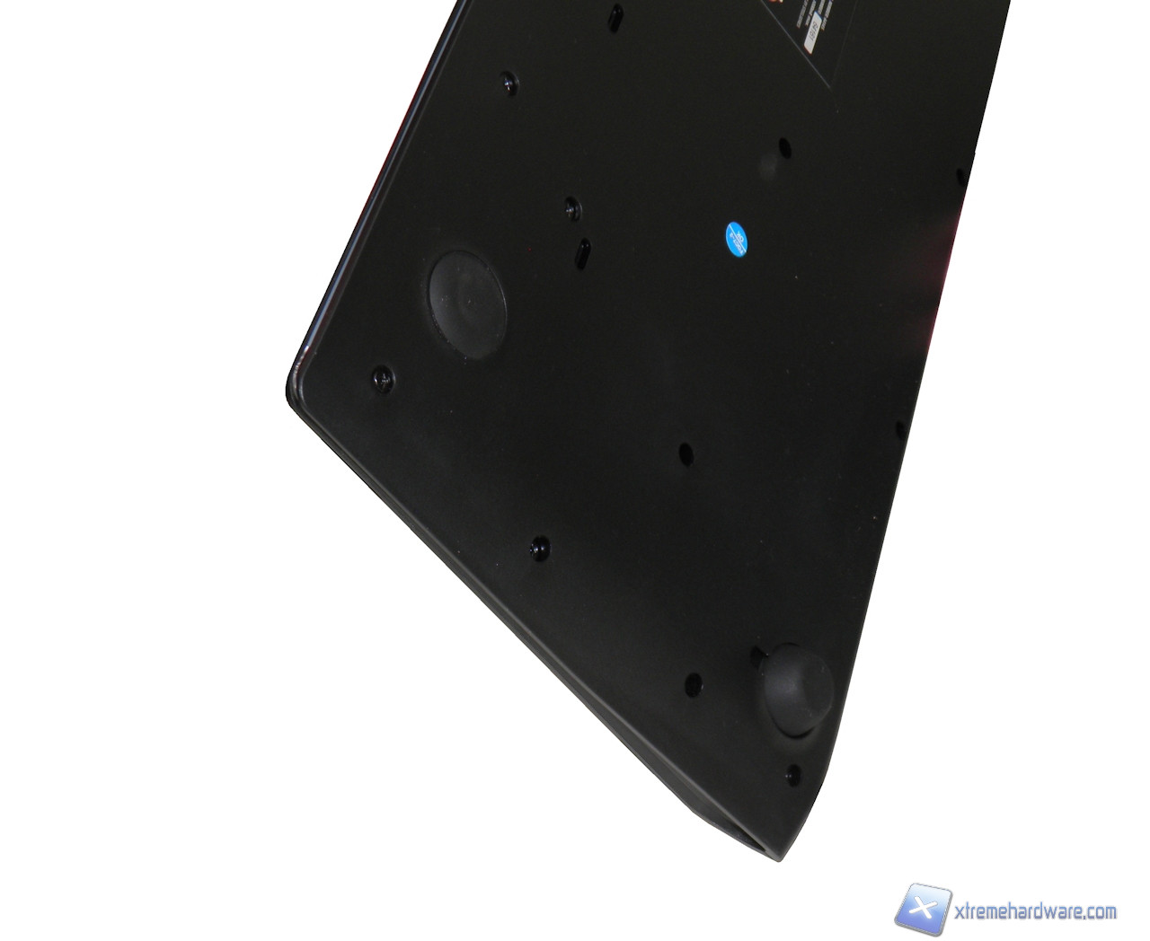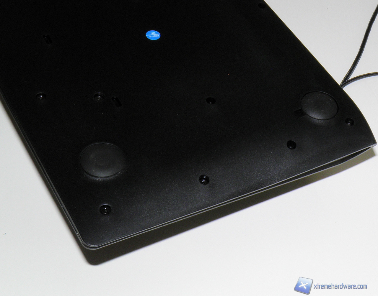 Nella parte posteriore sono situate due porte USB 2.0, mentre la parte inferiore risulta insolita e priva di piedini per regolarne l'inclinazione. Steelseries non ha tuttavia escluso la possibilità di regolare l'altezza della Apex: troviamo, infatti, dei piedini in gomma dal profilo rialzato da sostituire a quelli installati di serie.