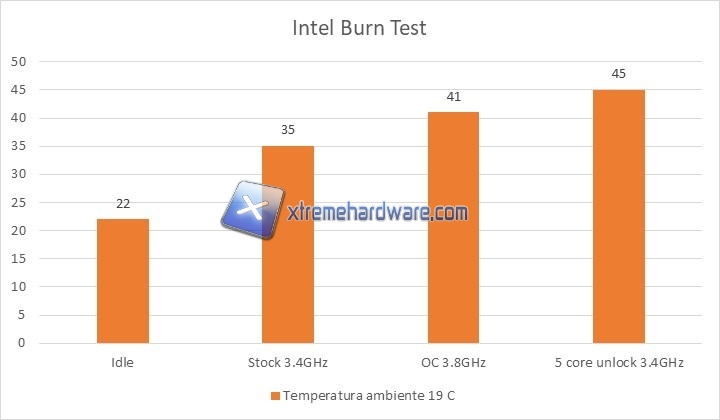Come ultima nota, nel caso le temperature riportate vi sembrassero eccessivamente basse, vi ricordiamo che i vecchi Phenom II x4 di AMD erano CPU con valori massimi di temperatura molto ridotti, intorno ai 60 gradi centigradi. Mantenere i core, anche in overclock, ad un massimo di 40/45 gradi C è indice di ottime prestazioni e di un buon margine anche in vista del periodo estivo ove, con una temperatura ambiente maggiore, ci si aggirerà su temperature di circa 10 gradi C più alte; valore perfettamente compatibile con un massimo ipotetico fissato intorno ai 60 C.