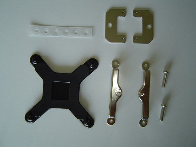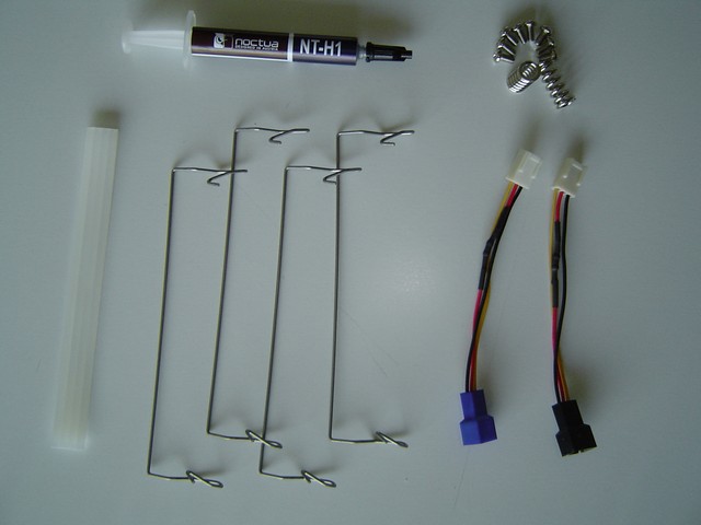 In particolare troviamo le staffe per socket LGA 775 e per AM2 (quelle per AMD 754, 939, 940 sono acquistabili separatamente). Le staffe sono raccolte in due bustine con chiusura adesiva ed etichettate, facilmente richiudibili e riutilizzabili. Una terza bustina contiene le clip per il montaggio della ventola al dissipatore, degli adattatori per l'attacco della ventola che consentono di diminuire il regime di rotazione della stessa, un tubetto di pasta termoconduttiva (NT-H1), delle strisce di gomma per assorbire le vibrazioni della ventola e delle parti necessarie per l'assemblaggio di entrambi i kit.