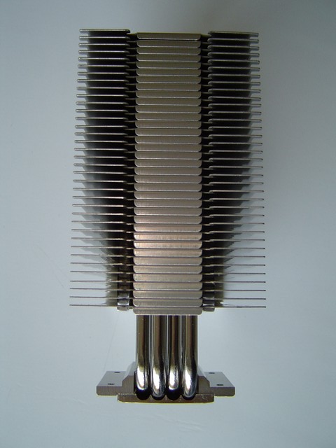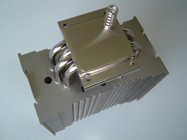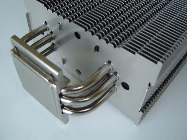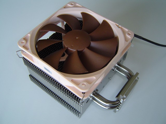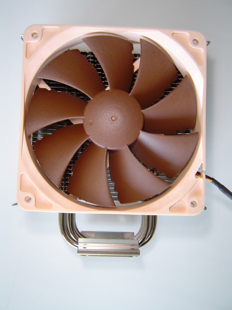La struttura a torre del Noctua NH-U12P rispecchia quella dei migliori dissipatori in circolazione. Da una base in rame si dipartono le 4 heatpipes ad “U” ( da cui il nome di questa serie di dissipatori) che conducono il calore un voluminoso corpo in alluminio composto da 36 alette. La base e le heatpipes sono in rame ma sono state nickelate (come pure le alette) per conferire un aspetto più lucido e omogeneo. In alto risalta lo stemma della Noctua a rilievo sull'ultima aletta di alluminio.