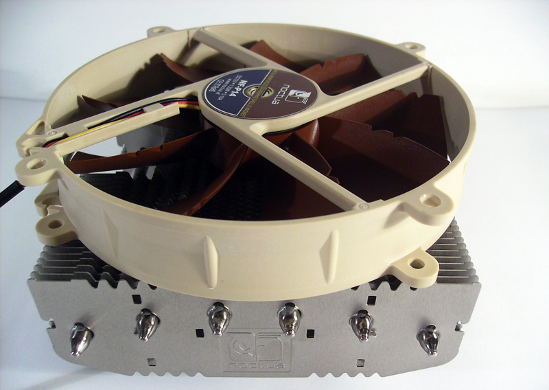 Il Noctua NH-C12P è costruito in alluminio, mentre la base e le heatpipes sono di rame. Ben 6 sono le heatpipes da 6mm raffreddate dalla ventola NF-P14 FLX (recensita qui). Grazie al suo particolare design, l’NH-C12P permette di raffreddare non solo la cpu, ma anche i componenti adiacenti al dissipatore. Le dimensioni non sono certo contenute: 90*126*152mm senza la ventola e 114*140*152mm con la ventola montata. L’altezza contenuta (114mm) permette però di installare il dissipatore anche nei case più stretti, senza il pericolo di arrivare troppo vicini alla paratia laterale. I socket compatibili sono LGA 1366, LGA 1156, LGA 775 per Intel e AM2, AM2+, AM3 per AMD. Noctua applica ben 6 anni di garanzia a questo prodotto, utile più per la ventola che per il dissipatore in sé stesso.