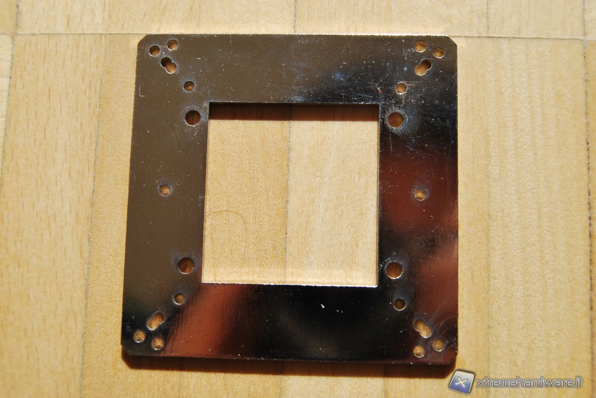 Per prima cosa smontiamo il dissipatore stock, svitando le quattro viti sul retro della scheda video. Successivamente dobbiamo preparare la staffa con i 4 perni che serviranno poi ad agganciare il dissipatore al retro della scheda. I perni vanno avvitati nella posizione mostrata nelle istruzioni, dipendente dall’interasse dei fori sulla VGA. La staffa fornita nella confezione consente l’installazione in tutte le schede video ma occorre fare particolare attenzione ad avvitare i perni nella giusta posizione. Occorre inoltre fare attenzione ad avvitare i perni dal giusto lato. In uno dei due lati della staffa, infatti, sono presenti delle svasature che servono ad accogliere le viti che useremo per avvitare la staffa alla base.
