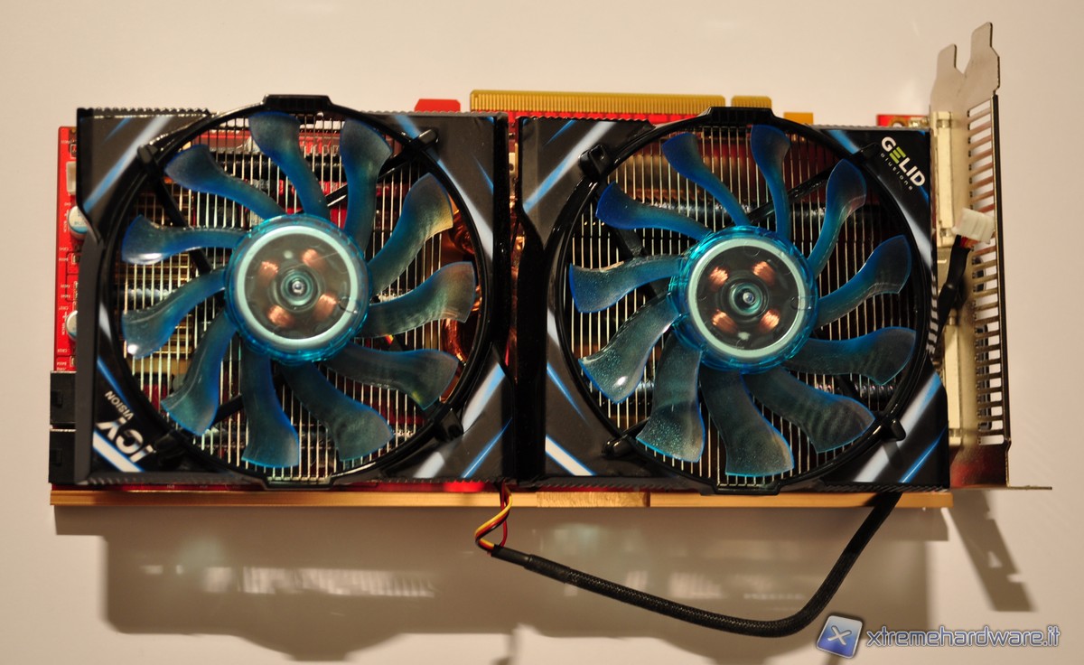 A questo punto sarà sufficiente installare la scheda e collegare il connettore delle ventole ad un molex dell’alimentatore o a un connettore tre pin della scheda madre. Facciamo notare che rispetto al dissipatore stock, l’icy vision richiede l’utilizzo di un solo slot aggiuntivo, grazie all’adozione di ventole molto sottili. Questo ci permetterà di utilizzarlo anche in configurazioni Sli o Crossfire per le quali è possibile avere almeno due slot di distanza tra le schede video.