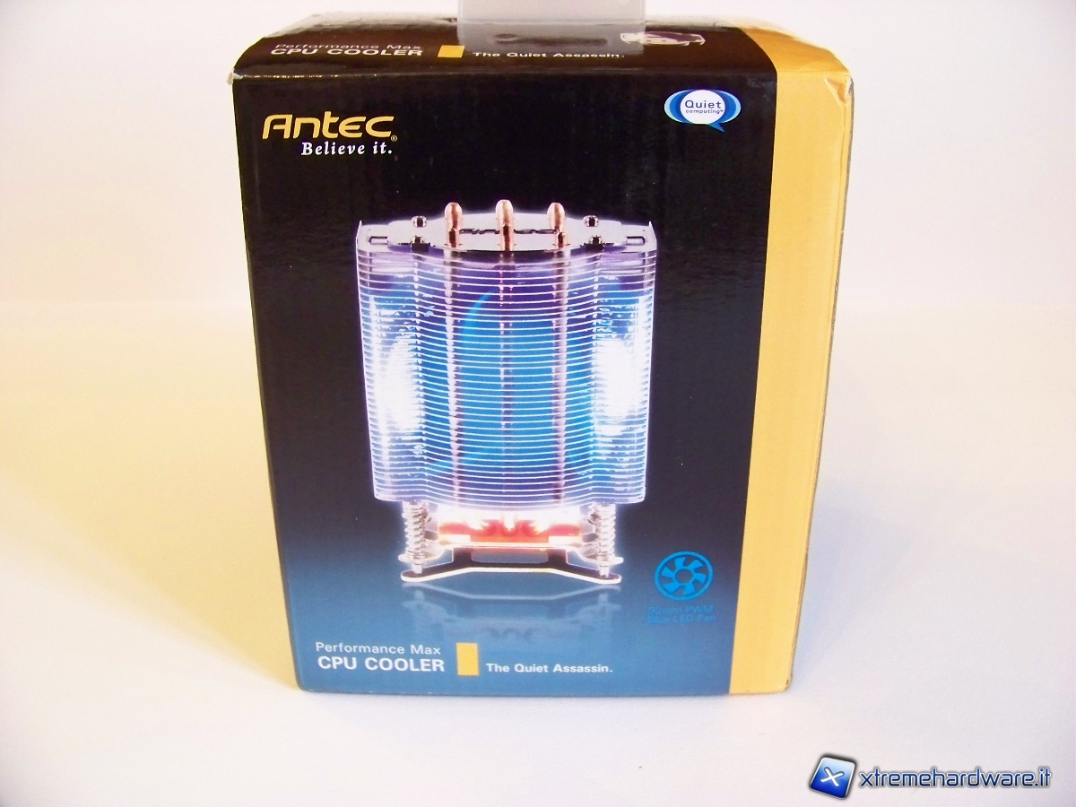 L’Antec Performance Max CPU Cooler viene venduto all’interno di una scatola semplice ma ricca di informazioni, che permettono all’utente di rendersi immediatamente conto del prodotto che sta acquistando.