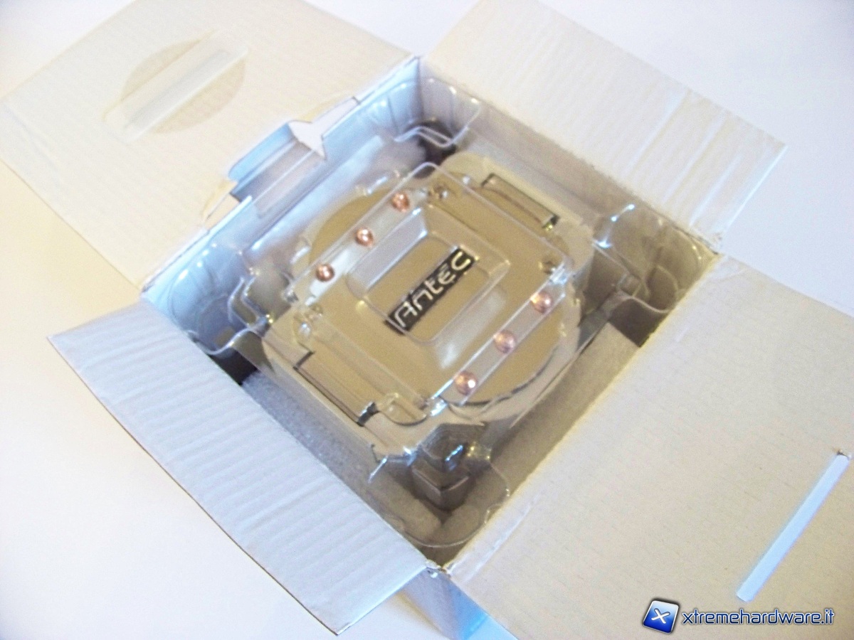 Una volta rimosse le plastiche protettive estraiamo il contenuto della confezione e notiamo come la dotazione fornita da Antec sia minimale. All’interno della confezione, infatti, non troviamo gadget e non vi è nessun manuale per l’installazione del dissipatore.