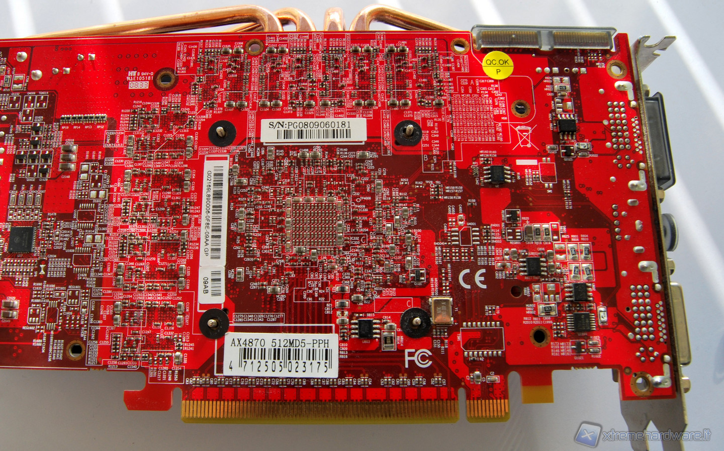 Installeremo lo Spire Slimod su una Powercolor AMD HD 4870 PCS+, dotata di dissipatore non reference realizzato da Zerotherm. Procediamo con la rimozione del dissipatore e la pulizia della GPU dai residui di pasta termica. Notiamo subito che i dissipatori delle RAM e la decorazione in rame in cima la PCB di questo modello custom impediscono l’istallazione del nostro dissipatore e pertanto vanno rimossi. Cercando di far leva da un angolo cerchiamo di staccare con molta attenzione il dissipatore incollato sulle RAM. Provvederemo poi all’installazione dei dissipatori in dotazione con gli appositi pad adesivi. I chip di RAM sovrastanti la GPU saranno coperti dalla base del dissipatore e dovremo pertanto applicare i Pad termici.