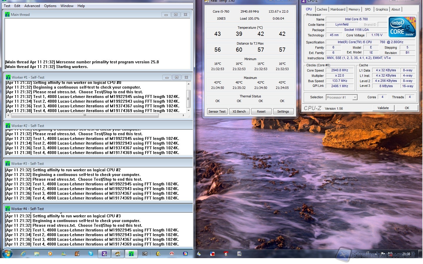 Le temperature ottenute dal nostro Cogage sono davvero buone. Possiamo notare come a default la temperatura media sotto carico sia di 41.5°C a default, che sale a 45°C facendo un overclock di 600Mhz, fino ad arrivare ai 54°C portando la CPU a 4Ghz, con un incremento del clock pari a 1.2Ghz. I 13°C in più, rispetto alla CPU a default, non sono molti e ciò sta a significare che il Cogage è in grado di mantenere ottime temperature anche in caso di overclock.