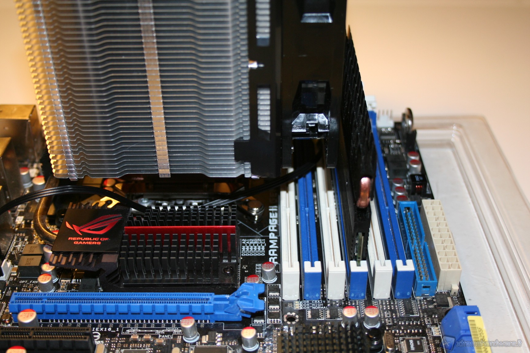 Come problemi potenziali potrebbero esserci l’installazione in schede madri aventi periferiche PCI troppo vicine al North Bridge della scheda madre oppure problemi con memorie aventi un alto profilo perché purtroppo il design di questo dissipatore implica che verranno occupati due o addirittura tre slot di RAM, se posizionato con la ventola frontalmente. Tale problema è facilmente aggirabile posizionando la ventola da 120mm posteriormente; si perderà qualche grado ma si avrà maggiore compatibilità con i moduli di RAM. D’altra parte proprio per ovviare a questo problema, molti produttori di RAM stanno abbandonando moduli a profilo alto, riducendo i consumi e il calore prodotto.
