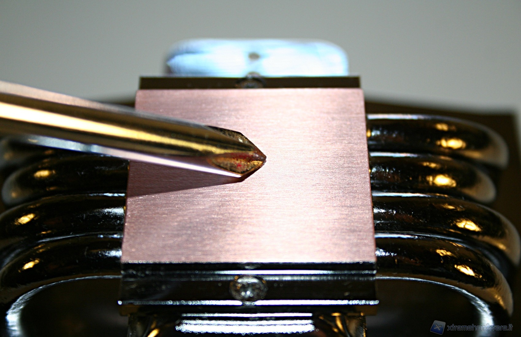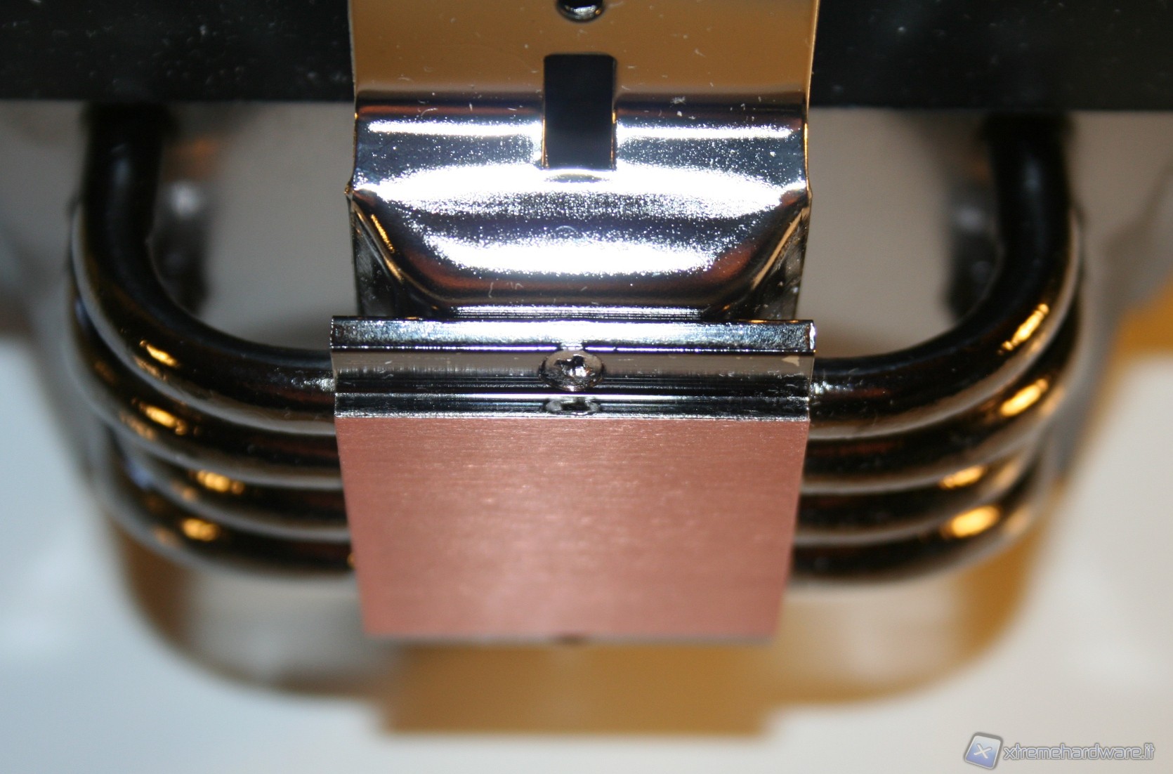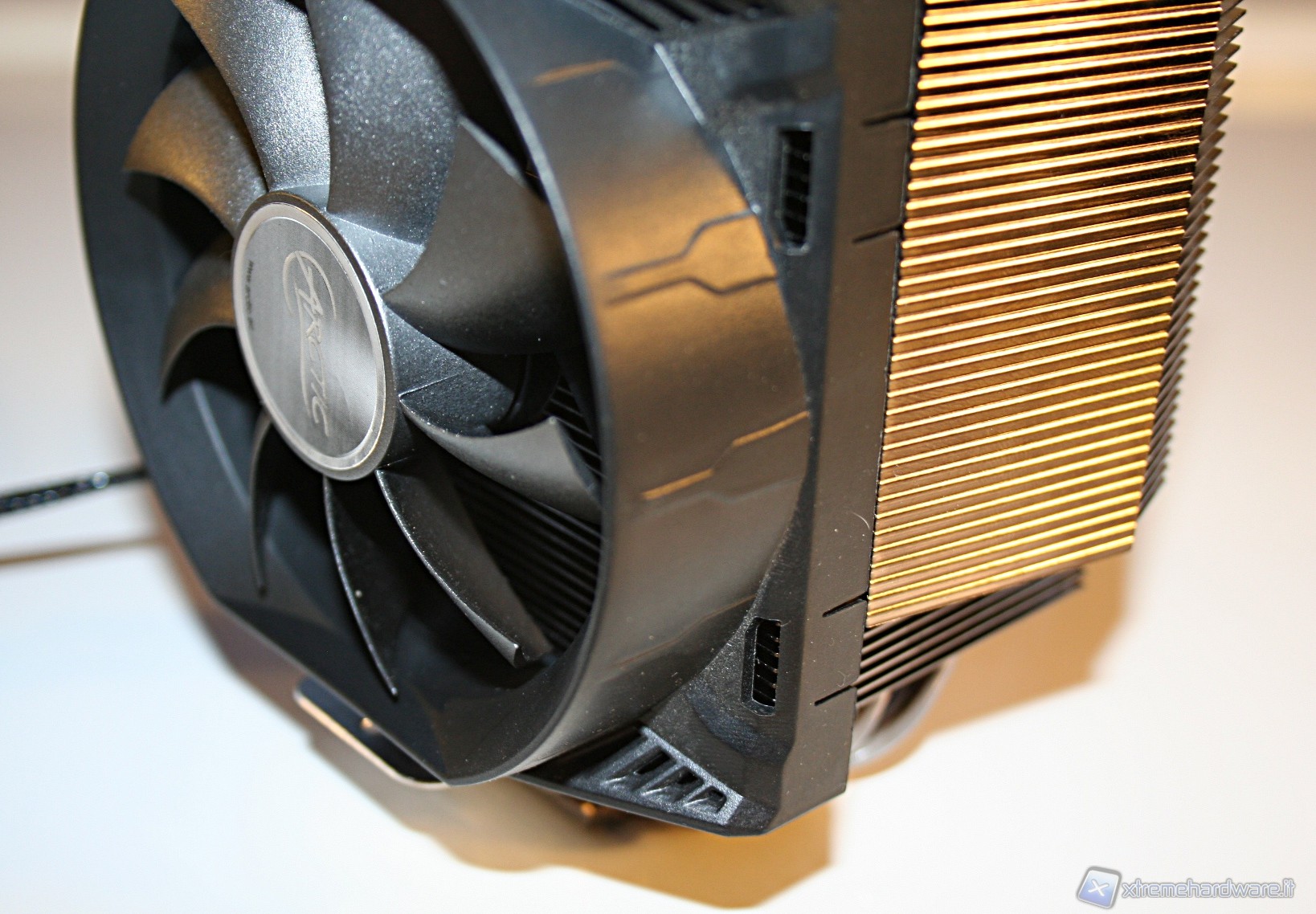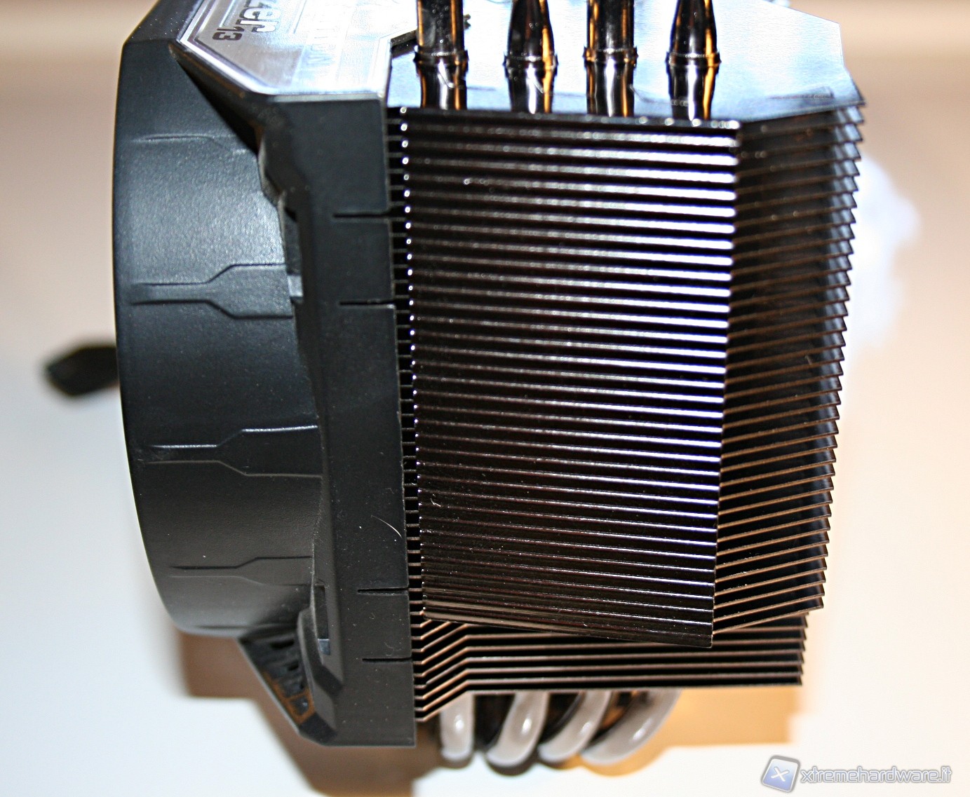 La finitura delle heat pipes è davvero eccellente, tant’è che nella parte superiore c’è il classico cappuccio terminale, che conferisce un’ottima estetica al prodotto. Notiamo inoltre che il posizionamento delle heat pipes è leggermente sfalsato, in modo tale che vengano investite da un leggero flusso d’aria. La solidità strutturale è esemplare e le saldature delle heat pipes, sia sulle alette che sulla base, sono di ottima qualità.