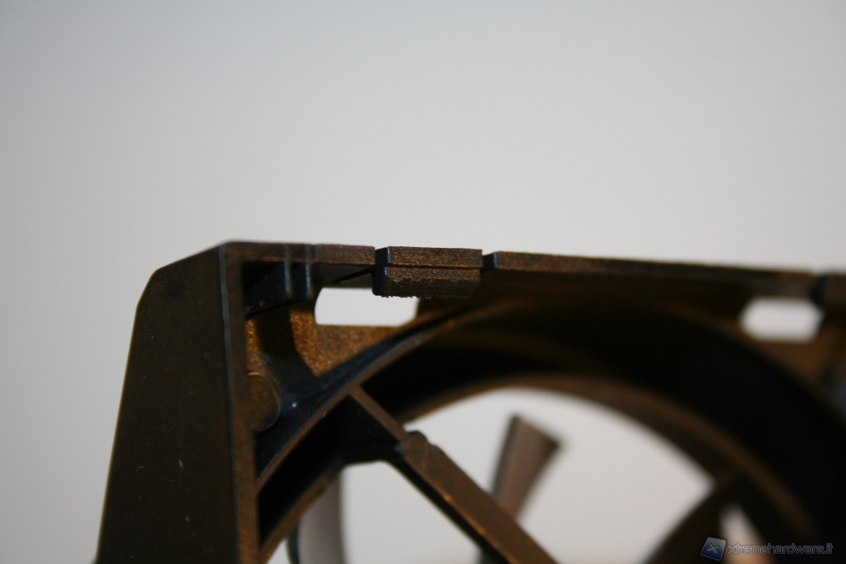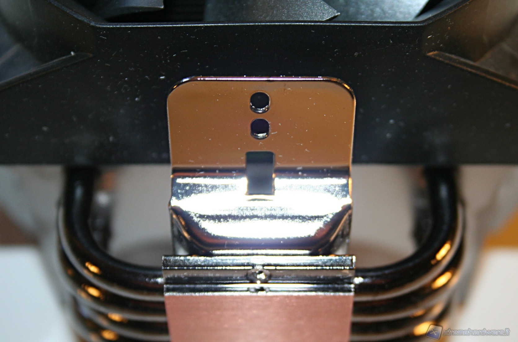 Il sistema di fissaggio della ventola è davvero solidissimo, peccato che per smontarlo bisogna fare molta pressione, ed è facile romperlo, come è successo a noi. Similmente a quanto è stato usato nel Cooler Master HYPER 612S, è stata usata una struttura di natura plastica dura, ma questa volta più resistente, che è fissata al dissipatore grazie a delle scanalature laterali dello stesso. Purtroppo però durante lo smontaggio una delle due clip si è spezzata. Data la durezza, bisogna spingere con un cacciavite a taglio, con forza. Ad ogni modo anche con un singolo clip risulta tutto molto stabile.