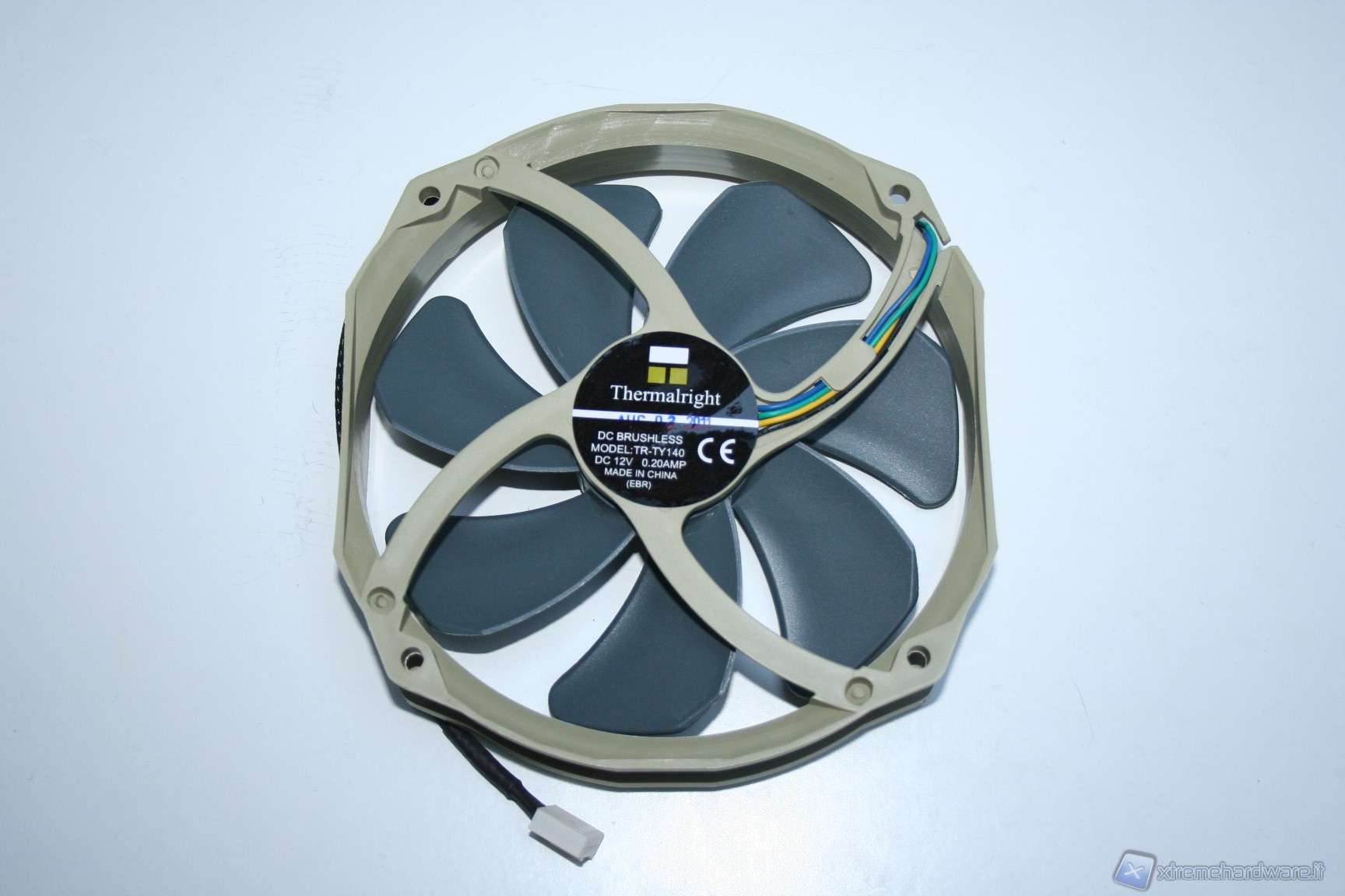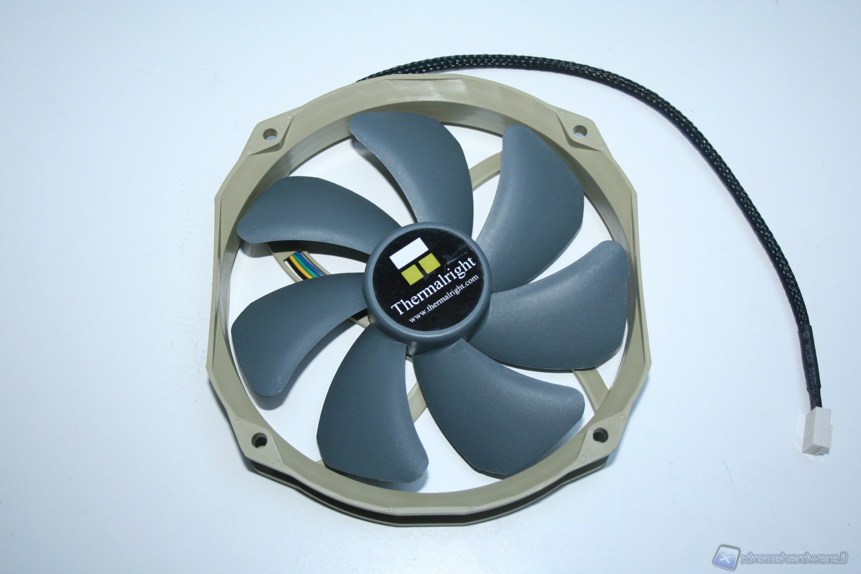 La ventola è il famoso modello TY-140PWM, dotato di ottimi valori di targa, ad esempio il flusso in CFM, e di una grande silenziosità, anche ad elevati regimi di rotazione (il massimo ricordiamo che è 1300RPM); presenta 7 pale, aventi a loro volta una curvatura proprietaria che ne permette l’aumento sia della portata che dell’efficienza complessiva, concentrando leggermente l’aria anche frontalmente. La ventola può essere -regolata tramite PWM; ad ogni modo la rumorosità a pieno regime si attesta a soli 21dBA. il cavo di alimentazione è ottimamente sleevato, diversamente dal modello precedente. Sono presenti quattro clip per il montaggio di una/due ventole da 140mm e ciò rappresenta il massimo di ventole potenzialmente installabili. Un deciso punto a favore per questa soluzione! Ora veniamo al montaggio delle ventole: purtroppo qui, è presente lo stesso problema del Thermalright Macho, ovvero è presente un sistema di fissaggio che è costituito da staffe che necessitano di essere inserite per ben 5 cm abbondanti all’interno del dissipatore stesso, nelle fessure specifiche delle ventole. Vi mostriamo meglio il problema dalle fotografie :