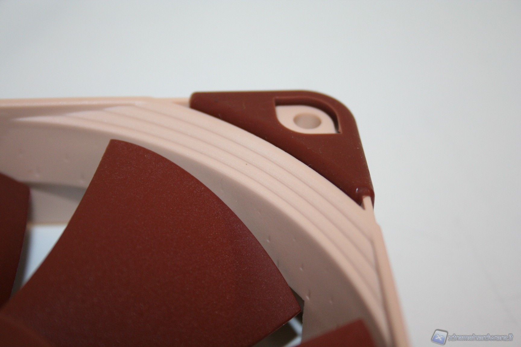 Focused Flow Frame: la presenza di una struttura assiale, con particolari angolazioni orizzontali non convenzionali, permette di direzionare il flusso d’aria lungo l’asse verticale, espellendo aria e focalizzandola nella parte frontale della ventola stessa. Questo è importante in quanto generalmente una ventola tradizionale tende a diperdere l’aria lateralmente già dopo poco spazio, in questo caso invece sarà possibile far passare l’aria anche attraverso dissipatori aventi alette molto serrate e profonde. Come vedremo i risultati dei test daranno ragione a Noctua.