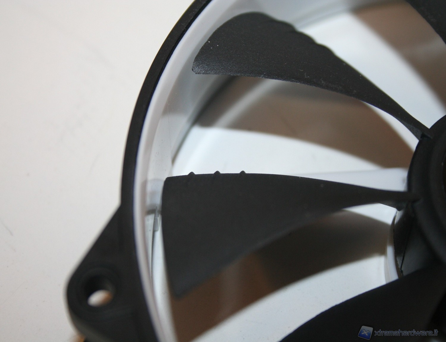 Le ventole presentano il telaio proprietario in elastomeri, e data la sua naturale proprietà di assorbimento delle vibrazioni del motore, potete stare certi che saranno soluzioni silenziose. Menzioniamo anche il cambiamento della colorazione interna delle ventole, in bianco per risaltare rispetto al colore scuro della scocca. La serie fa parte delle famose ed eccellenti Wingboost, ventole a nove pale con un sistema di sottili rilievi spesso poco meno di un millimetro, che permette alla singola pala di generare un flusso d’aria più uniforme verso il centro, e migliorare i vortici all’esterno della ventola stessa.