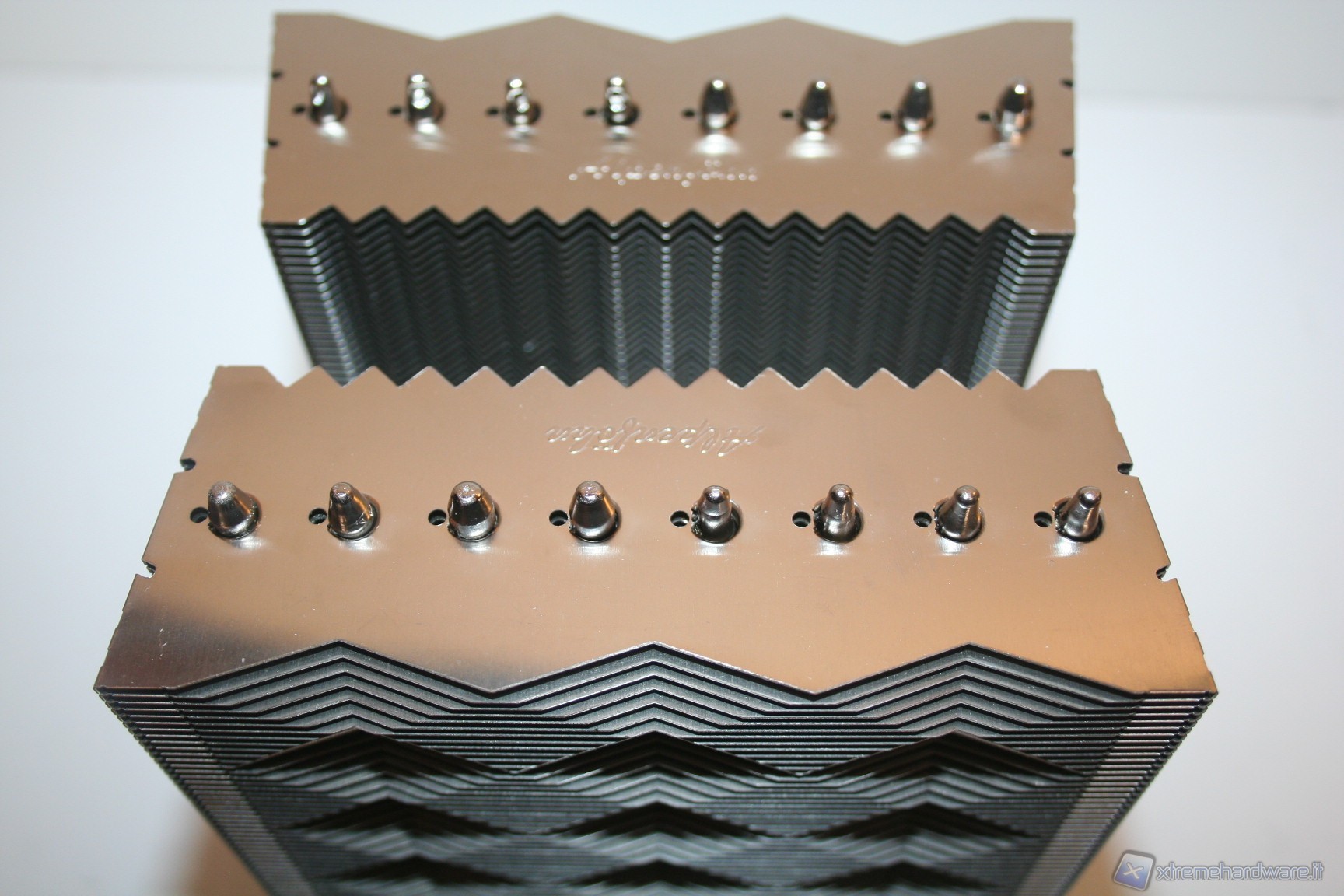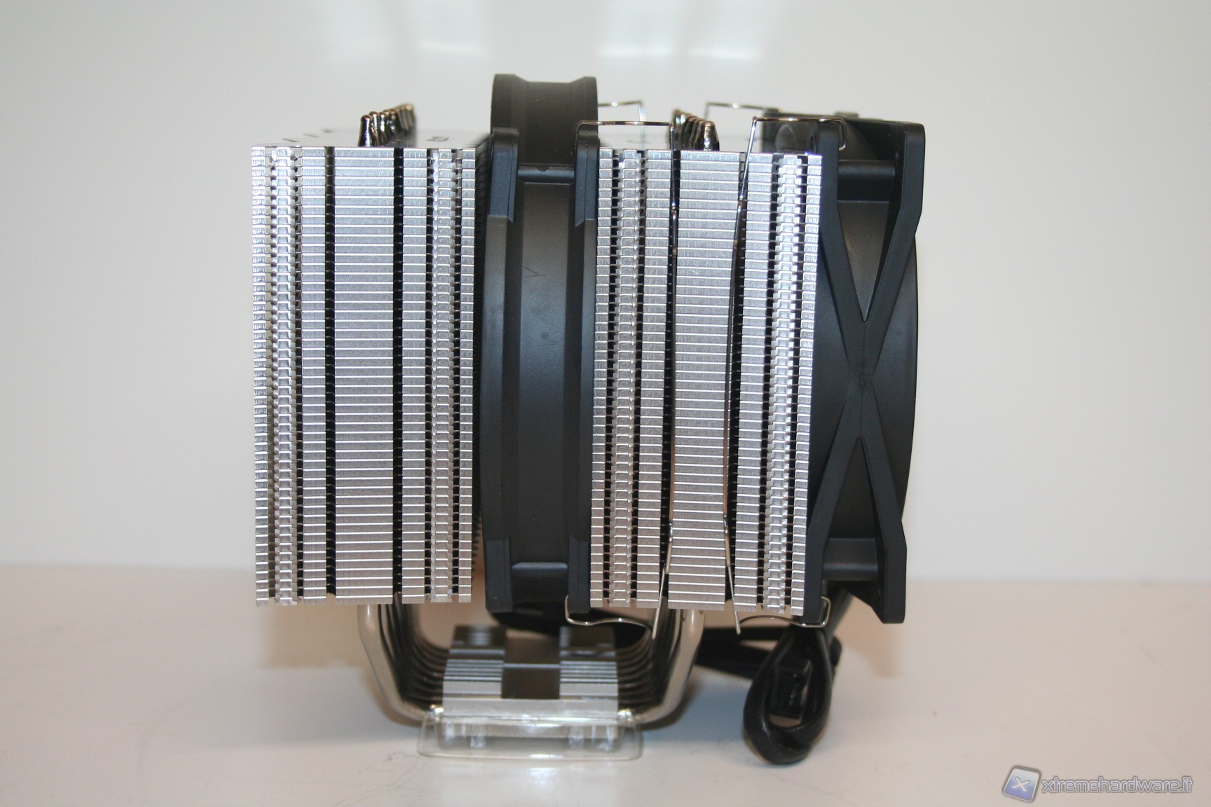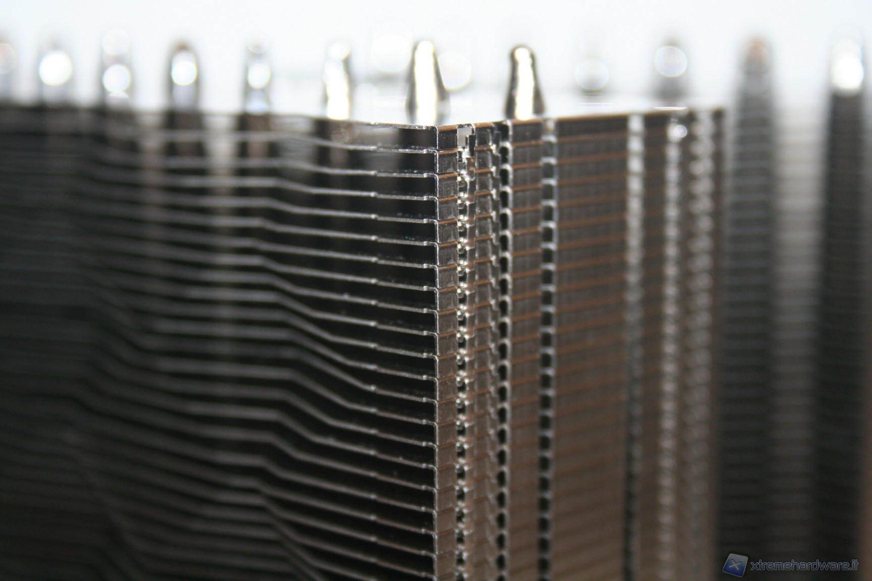 La qualità della lavorazione è altissima, come la solidità strutturale. La spaziatura tra le alette è serrata, quindi sarà necessario utilizzare ventole dall’elevato CFM, per compensare la superiore resistenza dell’aria nel passaggio rispetto a soluzioni standard; ciò però aumenterà la dissipazione teorica possibile, ma anche potenzialmente la rumorosità, qualora fossero appunto utilizzate ventole rumorose e dall’elevata pressione statica. Non è questo il caso però, date le ottime ventole in dotazione.