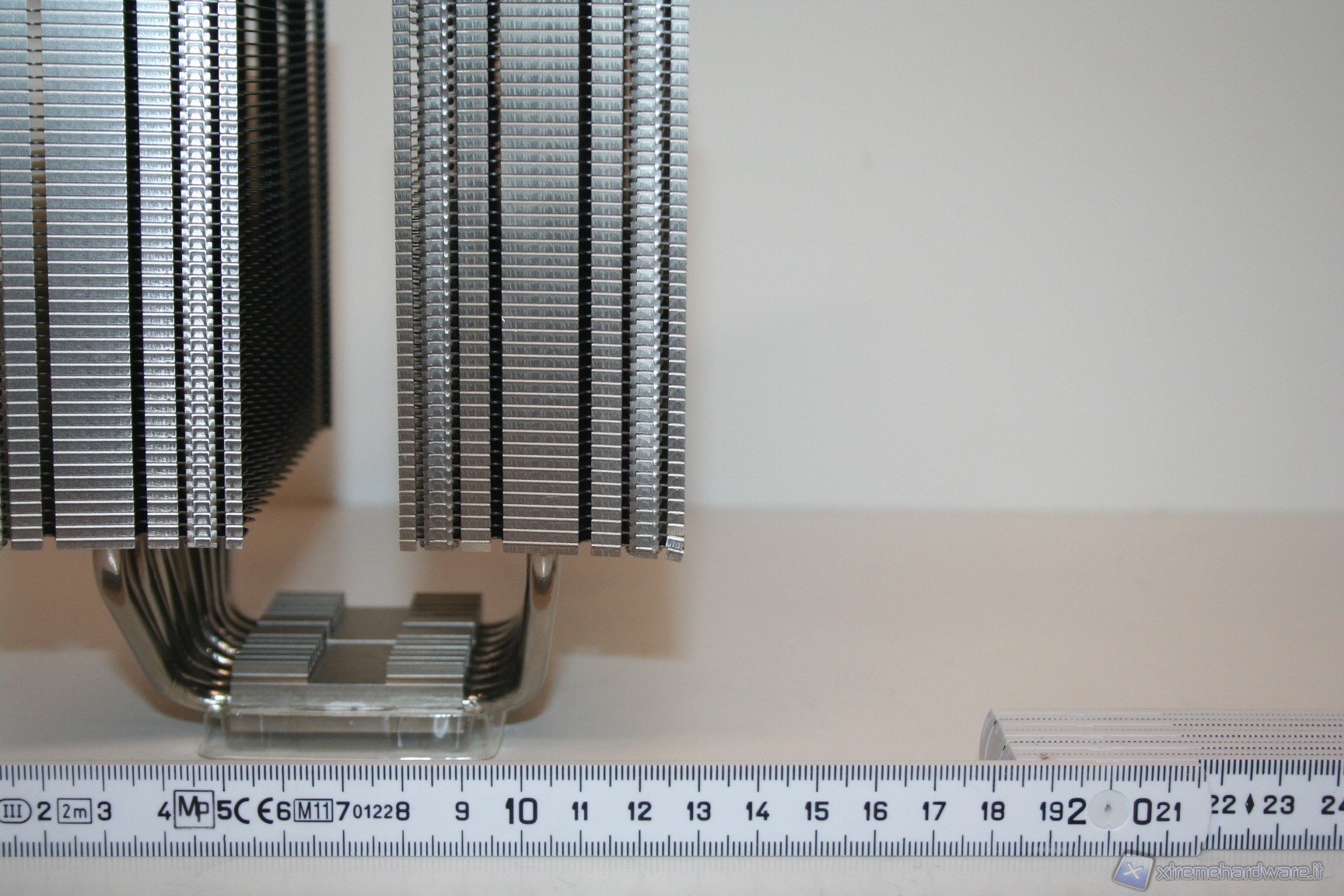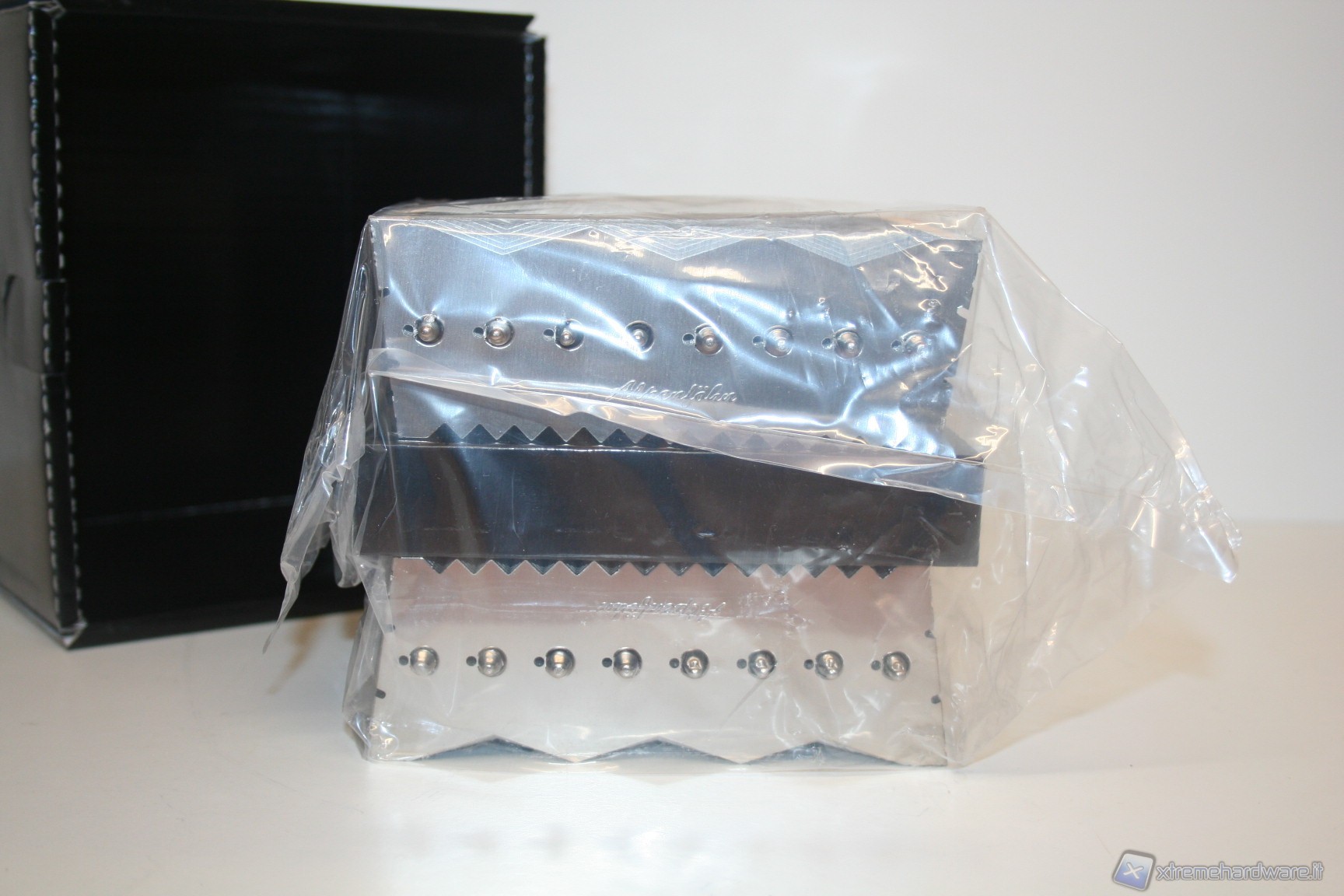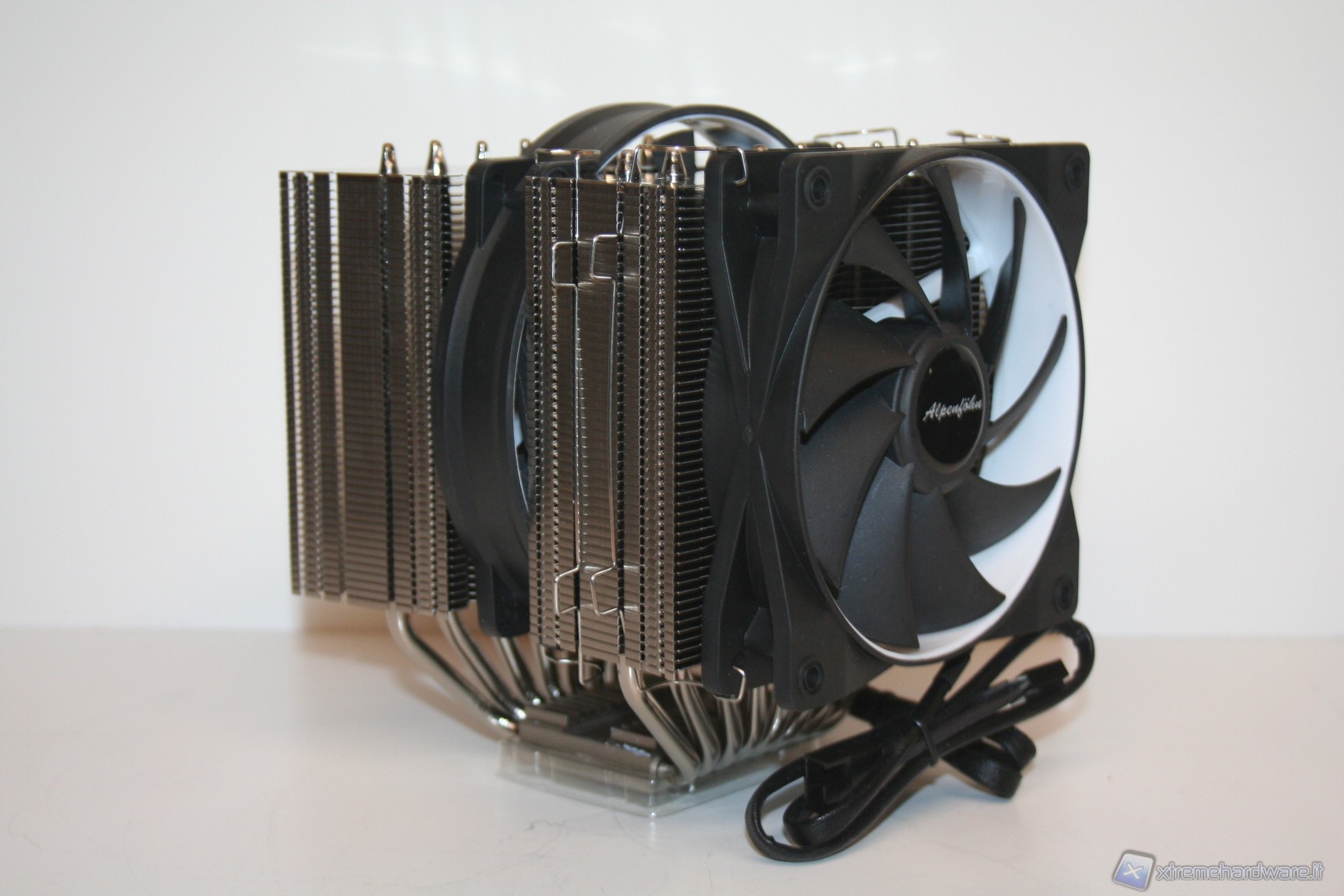 La qualità della lavorazione è altissima, come la solidità strutturale. La spaziatura tra le alette è serrata, quindi sarà necessario utilizzare ventole dall’elevato CFM, per compensare la superiore resistenza dell’aria nel passaggio rispetto a soluzioni standard; ciò però aumenterà la dissipazione teorica possibile, ma anche potenzialmente la rumorosità, qualora fossero appunto utilizzate ventole rumorose e dall’elevata pressione statica. Non è questo il caso però, date le ottime ventole in dotazione.