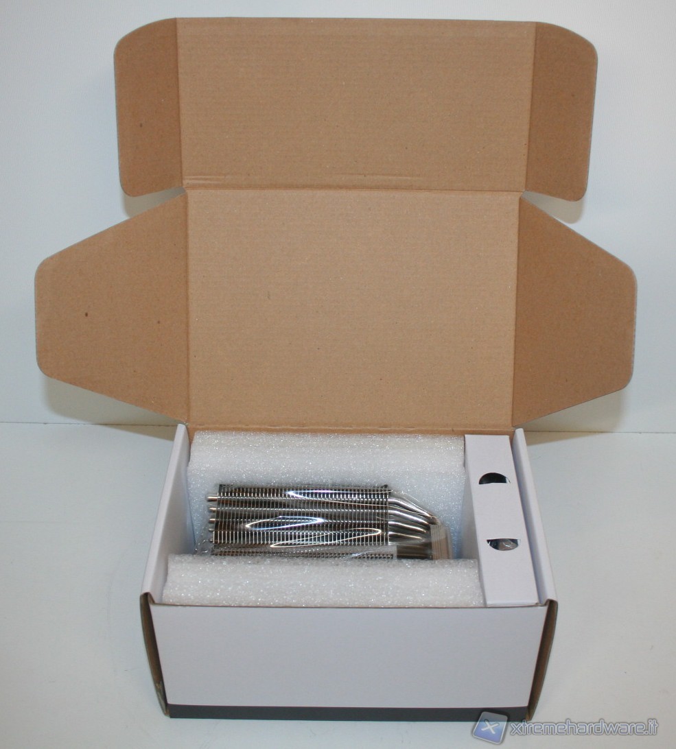 Partendo dalla confezione, siamo dinanzi ad un modello standard di cartone, con colorazione a sfondo bianco, e solite tonalità azzurrine Prolimatech, con il logo in argento lucido riflettente. Ottimo il layout esterno, le specifiche tecniche e le informazioni. Aprendola notiamo il dissipatore che è inserito all’interno di un rivestimento in schiuma espansa, all’interno di una bustina protettiva di plastica. Alla base è presente la scatolina con il generosissimo bundle, che comprende: