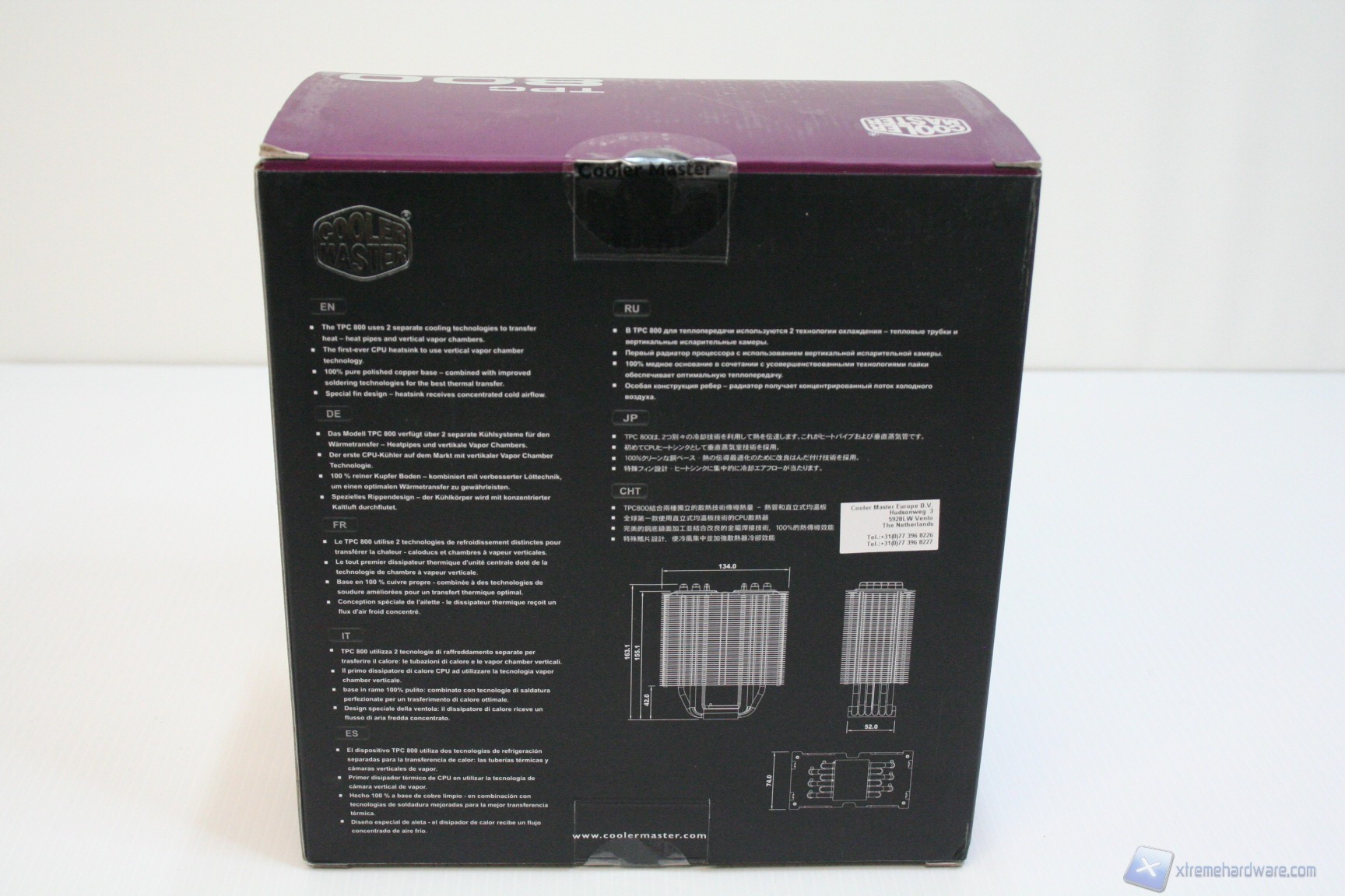 La confezione è classica Cooler Master, quindi di buon livello ma dalle informazioni essenziali. L’imballo interno però è eccellente, e il dissipatore è riposto all’interno di uno strato di poliuretano protettivo, che ne impedisce il danneggiamento per urti accidentali derivanti dal trasporto. Generalmente è già da questo elemento che si capisce quanto il marchio abbia lavorato bene, è un indice di qualità e rispetto verso il prodotto. Vi mostriamo alcune fotografie dell’imballo e del contenuto: