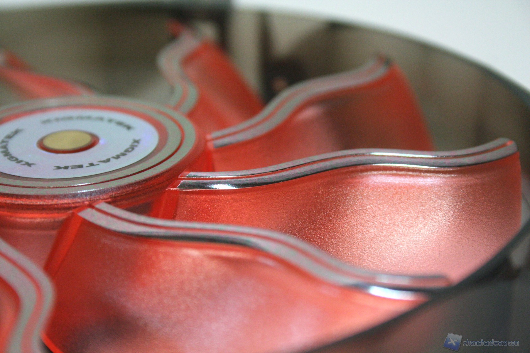 Cominciamo l’analisi partendo dal modello XAF-F1453 da 140mm. Anche in questo caso e similmente ai modelli da 120mm, Xigmatek ha ritenuto opportuno presentare la ventola con una confezione molto elaborata ed atipica, in plastica dura, sagomata sulla ventola stessa. La struttura della ventola, lo chassis, è in plastica dura nera, le pale invece sono di una colorazione ibrida tra il “rosso di Marte” ed il “pesca chiaro”, molto gradevole alla vista. Presenta 9 pale, aventi una forma ondulata sia in larghezza che profondità e identica a quelle mostrate in precedenza, ad eccezione per la lunghezza maggiore in questo caso. Questo motivo presenta quindi tutti i punti a favore delle precedenti ed infatti il connubio CFM e dBA sembra elevatissimo. Il motore però in questo caso ha subito una piccola rivoluzione interna perché ha un MTBF decisamente superiore allo standard, si attesta a 150.000h. Il bearing utilizzato è denominato “Aeronautical Oil System Bearing”, il che ne ha determinato un MTBF pari a tre volte tanto il precedente. Questo conferma il giudizio iniziale sul marchio, che vi avevamo fatto presente. Le dimensioni del motore, sebbene venga specificato che è inferiore alla concorrenza, è di dimensioni standard in modo simile alla serie XAF da 120mm, ed oltretutto la curvatura la centro del motore stesso è quasi irrilevante. Sempre come le precedenti, il bordo superiore delle pale parte immediatamente dal bordo superiore del motore; questo fattore è assolutamente positivo in quanto non si verranno a creare evidenti zone morte derivanti dal cono d’ombra del motore (lo ripetiamo ma d’altronde è necessario). Il modello è dotato di quattro LED arancioni davvero particolari, che donano un effetto ondulato simile ad una svastica. Le pale non sono removibili. Oltre a questo bisogna menzionare che la ventola è dotata dei fori di installazione di una comune ventola da 120mm, però grazie al kit nel bundle è possibile installarla in slot da 140mm, grazie alle apposite staffe addizionali.