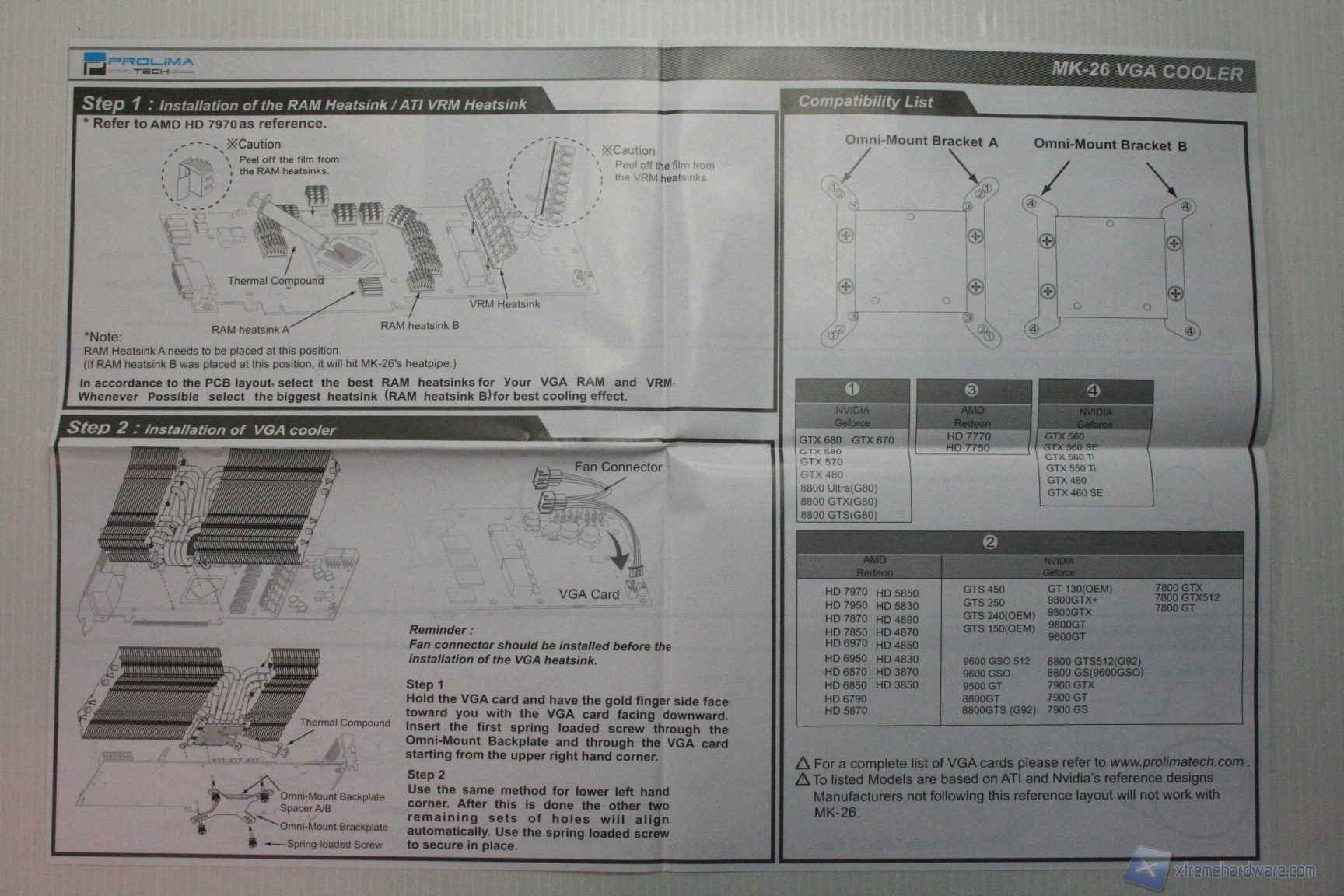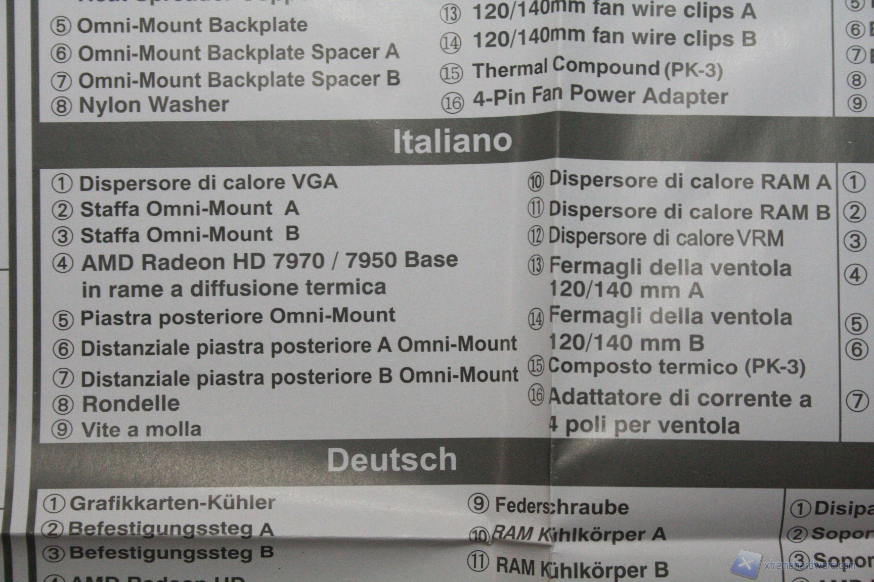 - 1x placca di dissipazione accessoria per schede video della serie AMD HD7950/70